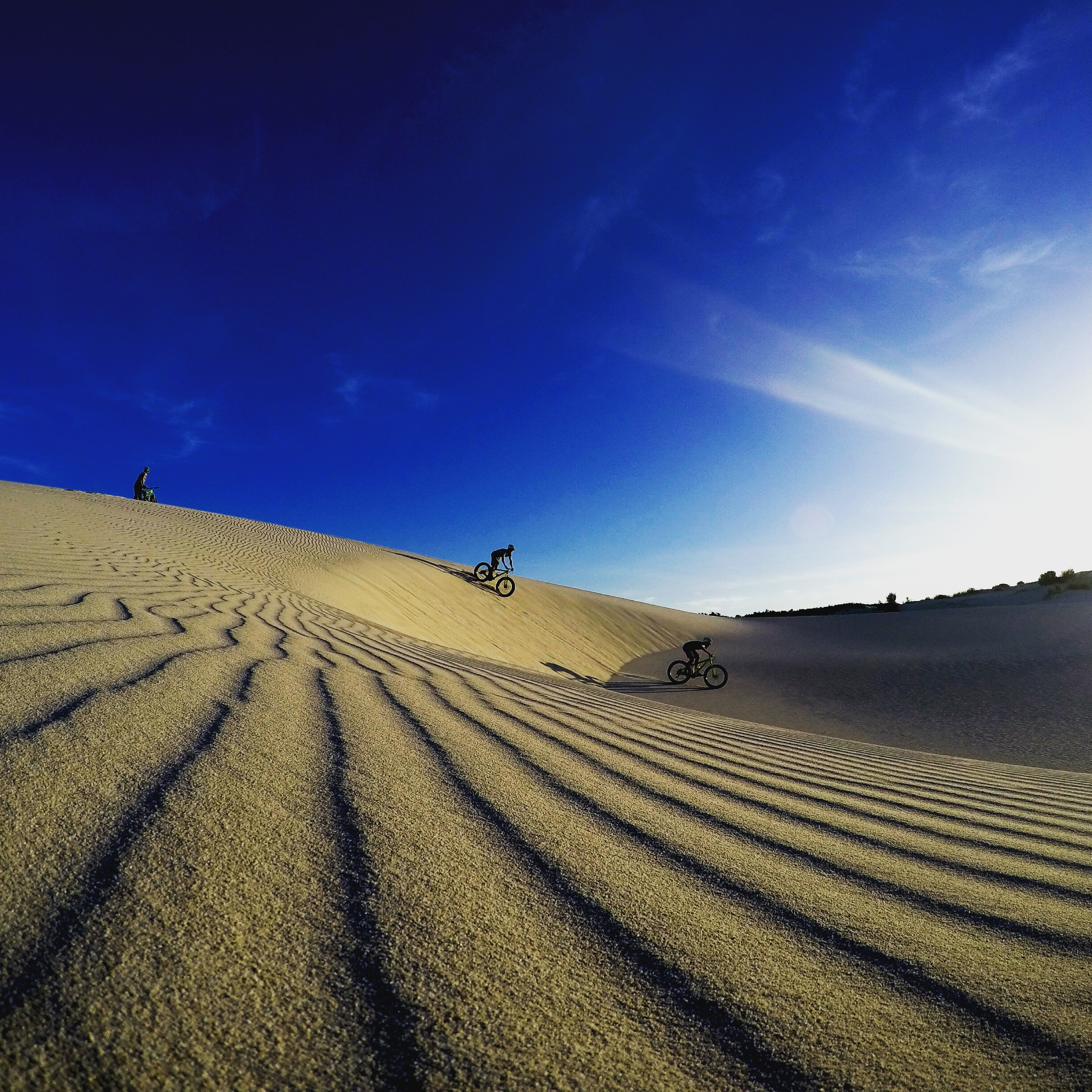 Fatbike Tours run year-round with the summer soft sand and winter smooth firm sand. In winter, the sand is extremely easy to ride on and easy for all levels. You can choose to take an easy cruise along and around the sand dunes or challenge yourself to 'slalom ski' down the slopes. You will be instructed from beginning to end to get the most out of your experience whether you are an adrenaline junky or just want to take a leisurely ride down the huge dune field from mountain to beach.