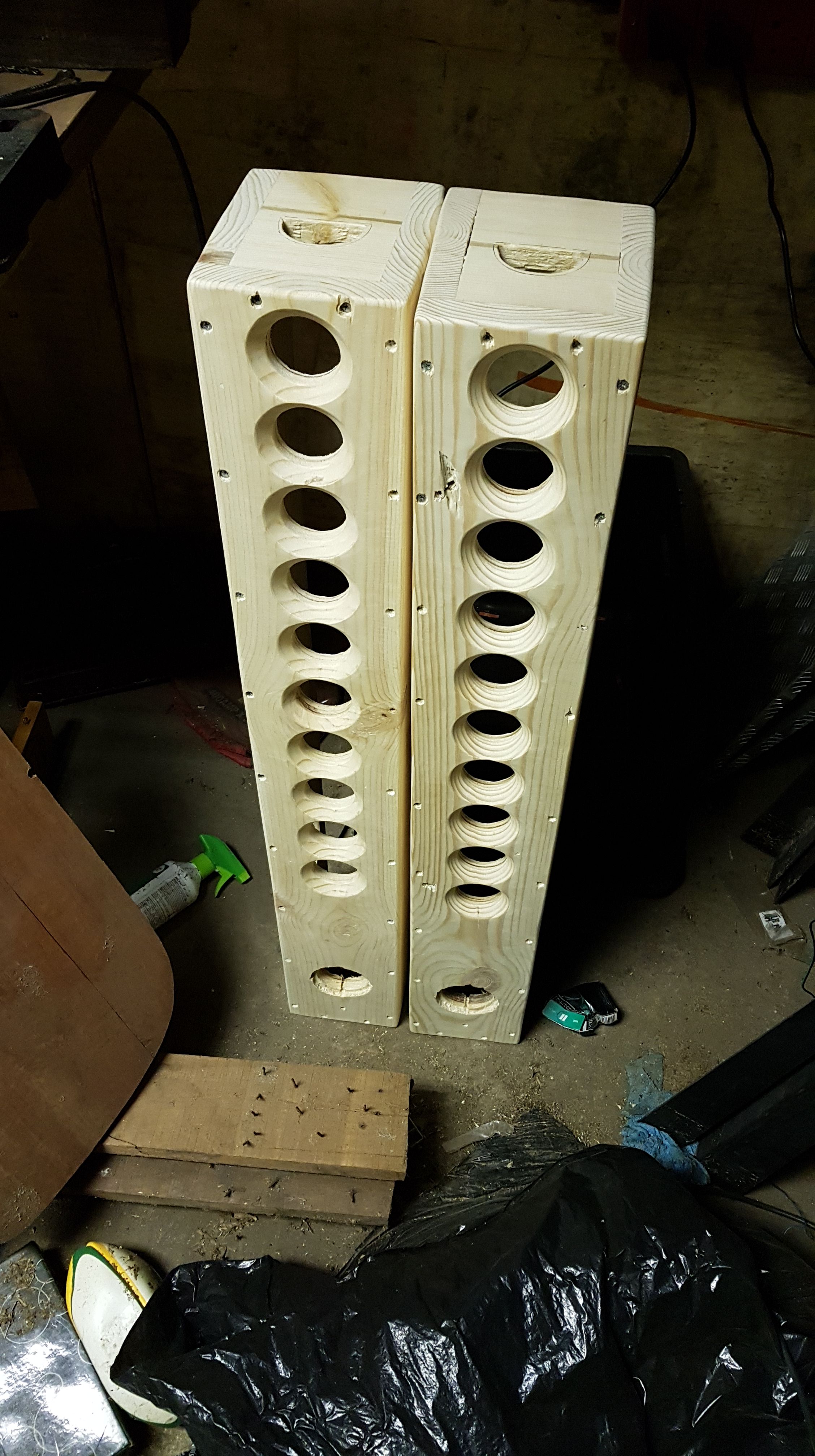Who says speakers have to be black or plastic or boring. Took two sets of surround sound speaker and made it unique.