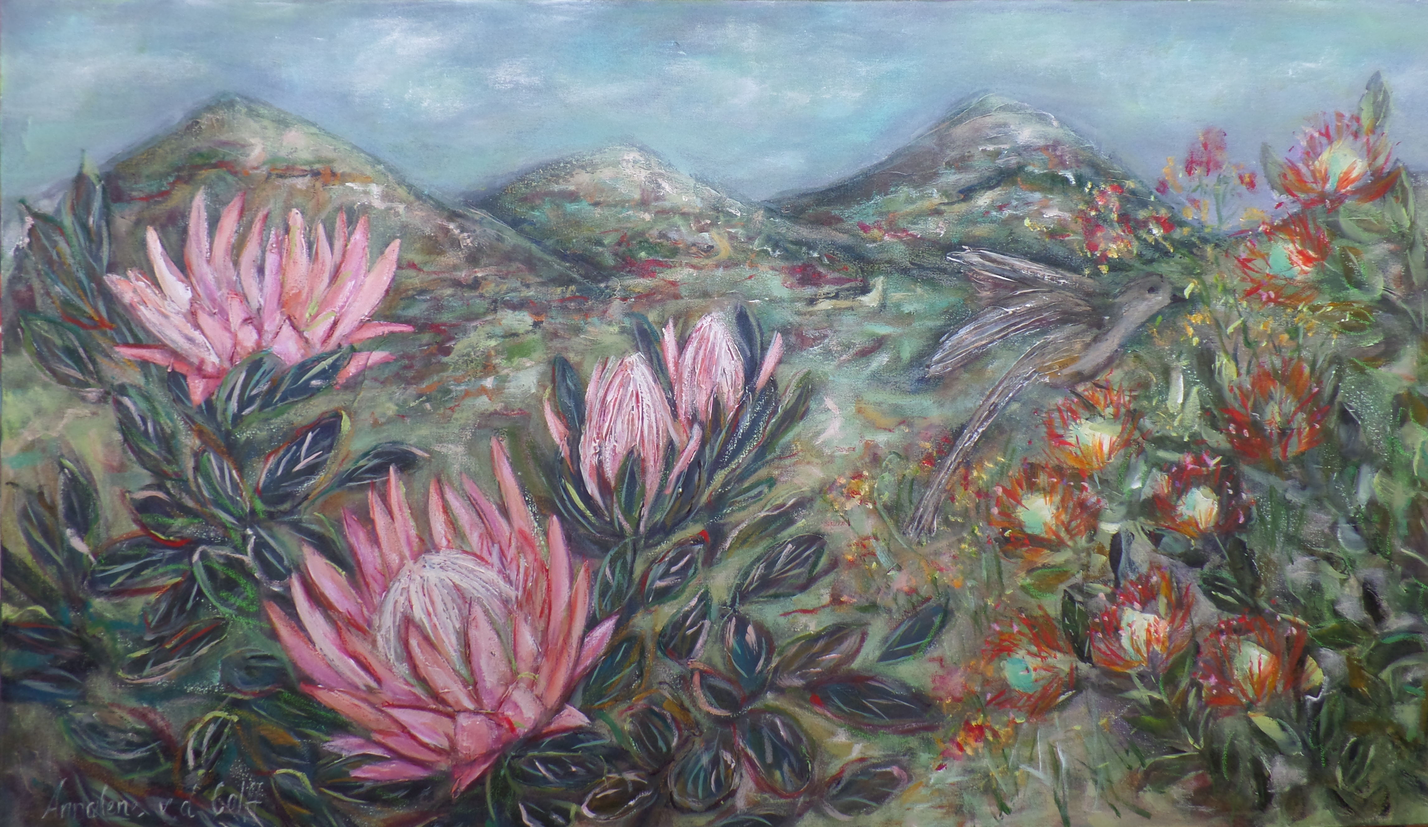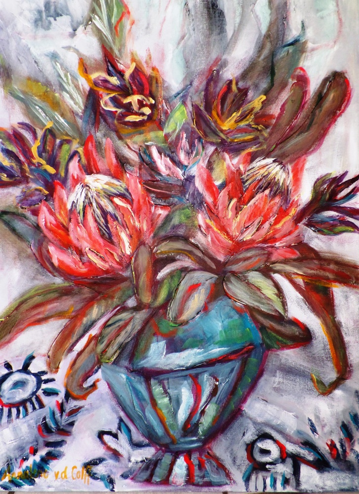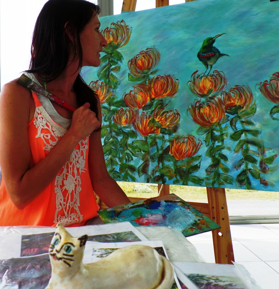 Annelene van der Colff sold her first artwork for five cents outside her parents home in the Karoo town of Nelspoort when she was only six years old. Now, years later, her artworks are sought after by art enthusiasts and collectors from around the globe. Calmness exudes from this artist and on meeting her one can immediately sense her deep creativity, which she allows to flow out onto her canvasses. Nowadays, her pricing has increased slightly from the original five cents but is still highly affordable and art lovers can expect to pay about R55 per 10cm squared, which works out to approximately R4000 for a 1m by 1m artwork. Annelene loves direct contact with her clients and you will often find her at popular festivals such as the Greyton Rose Festival and the KKNK. Keep an eye out for Annelene at the Hermanus Market next to the Village Square in the near future.