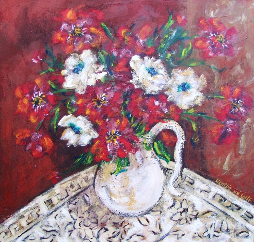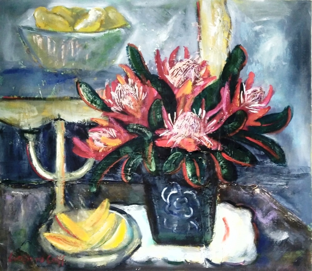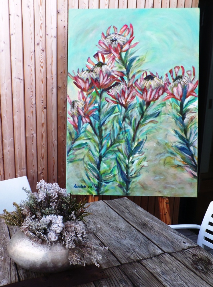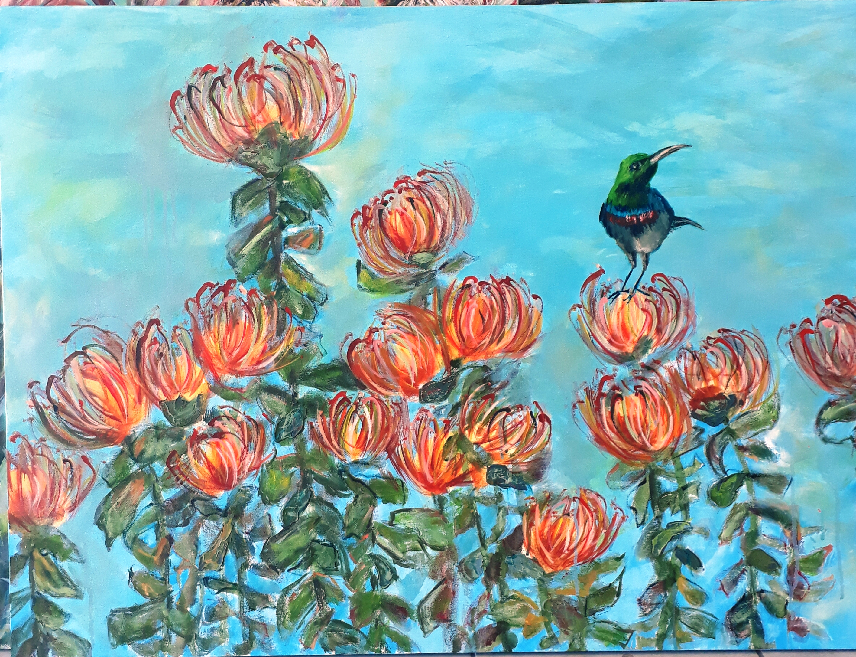 Annelene van der Colff sold her first artwork for five cents outside her parents home in the Karoo town of Nelspoort when she was only six years old. Now, years later, her artworks are sought after by art enthusiasts and collectors from around the globe. Calmness exudes from this artist and on meeting her one can immediately sense her deep creativity, which she allows to flow out onto her canvasses. Nowadays, her pricing has increased slightly from the original five cents but is still highly affordable and art lovers can expect to pay about R55 per 10cm squared, which works out to approximately R4000 for a 1m by 1m artwork. Annelene loves direct contact with her clients and you will often find her at popular festivals such as the Greyton Rose Festival and the KKNK. Keep an eye out for Annelene at the Hermanus Market next to the Village Square in the near future.