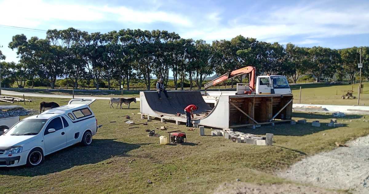 The beginning of June saw Gamco Services sponsoring the use of two trucks and a crane, and their time, to transport the much-anticipated skateboard ramp from Noordhoek to Dallas Farm just outside Gansbaai.