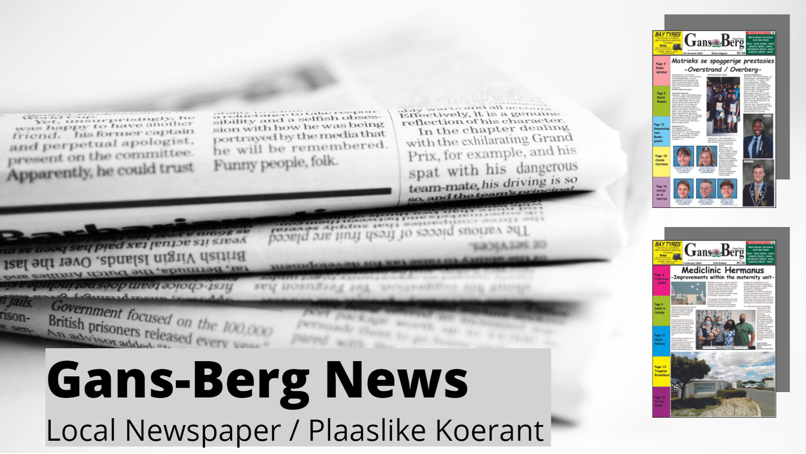 Have instant access to Gans-Berg Nuus / News and be the first to know what’s happening in Gansbaai, and the surrounding Overstrand area, from anywhere on the planet!