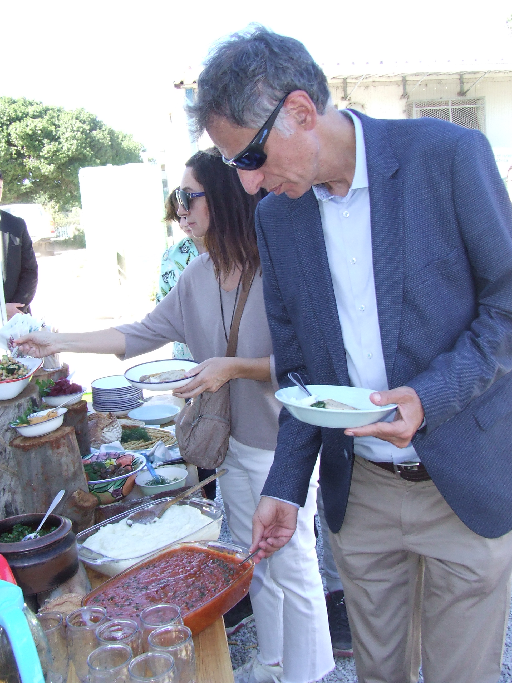 In Masakhane they were impressed by the vegetable gardens under the supervision of Pontsho Chibane. “We started from scratch with these gardens,” Pontsho told the ambassador. “Where you see the various beds with vegetables, there were only grass and weed.” After the walk-around, the ambassador and his family joined the staff members where a 'vegetable harvest lunch' was prepared for them by the Sjef, Ziyanda Dulani. The family also tasted traditional 'pap and sous' and looked quite impressed with it!