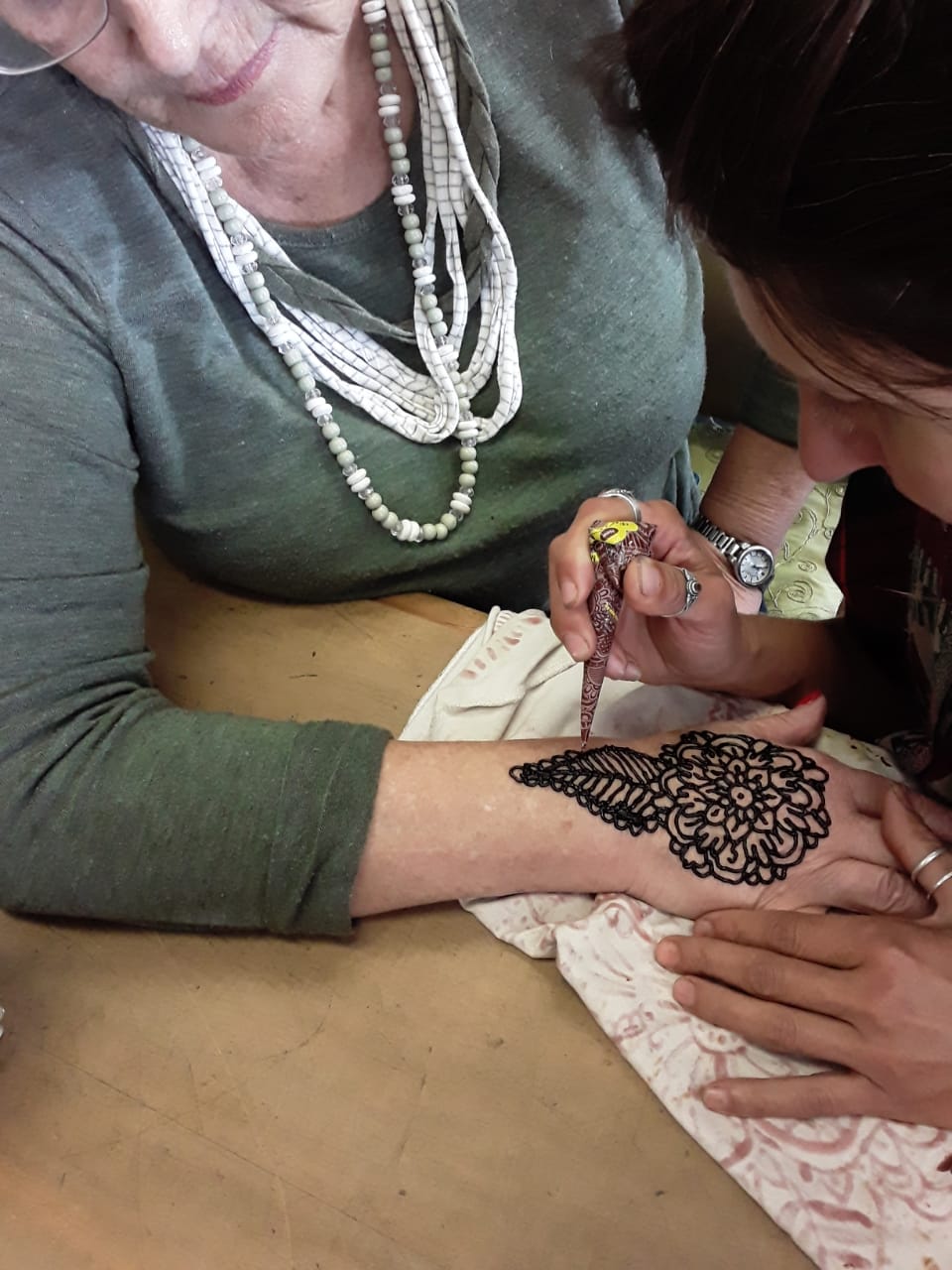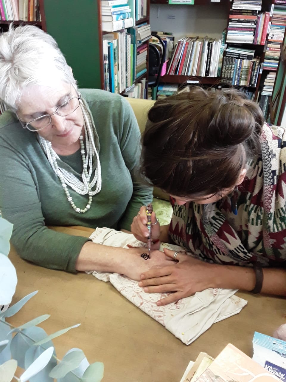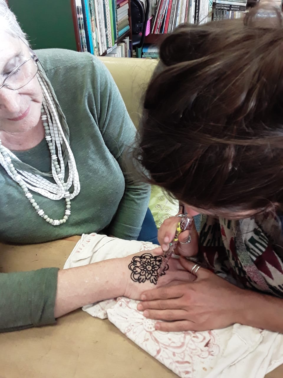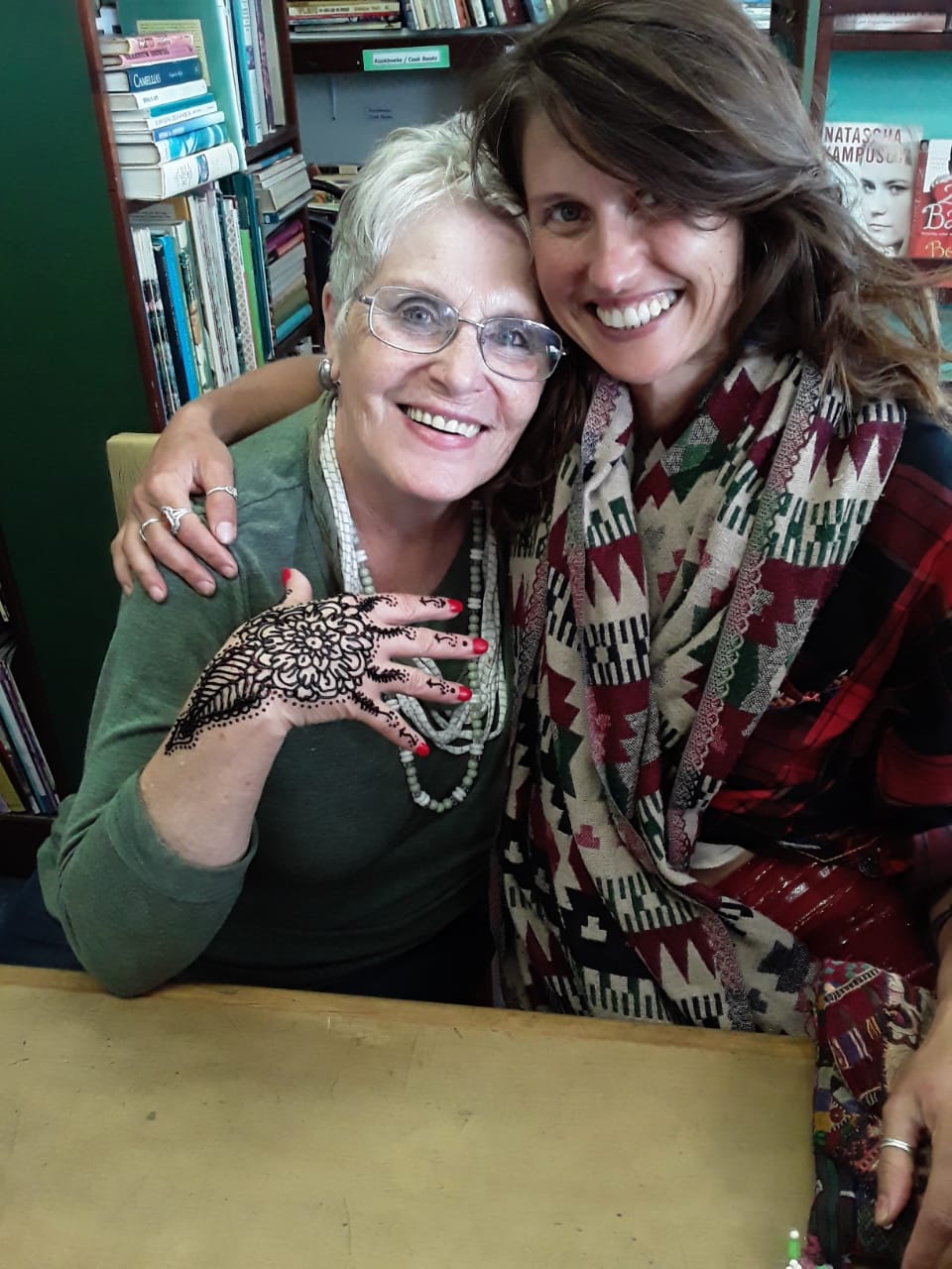 Kat Kwiecinska, a Henna Gypsey from Scarborough Cape Town, visited Gansbaai Book Exchange and painted Henna Hand Designs.
