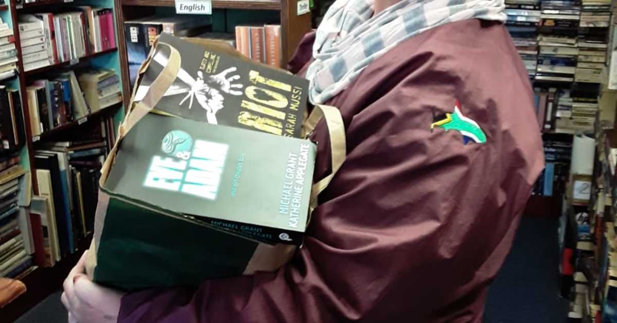 A box full of new books for Okkie Smuts Primary School in Stanford.