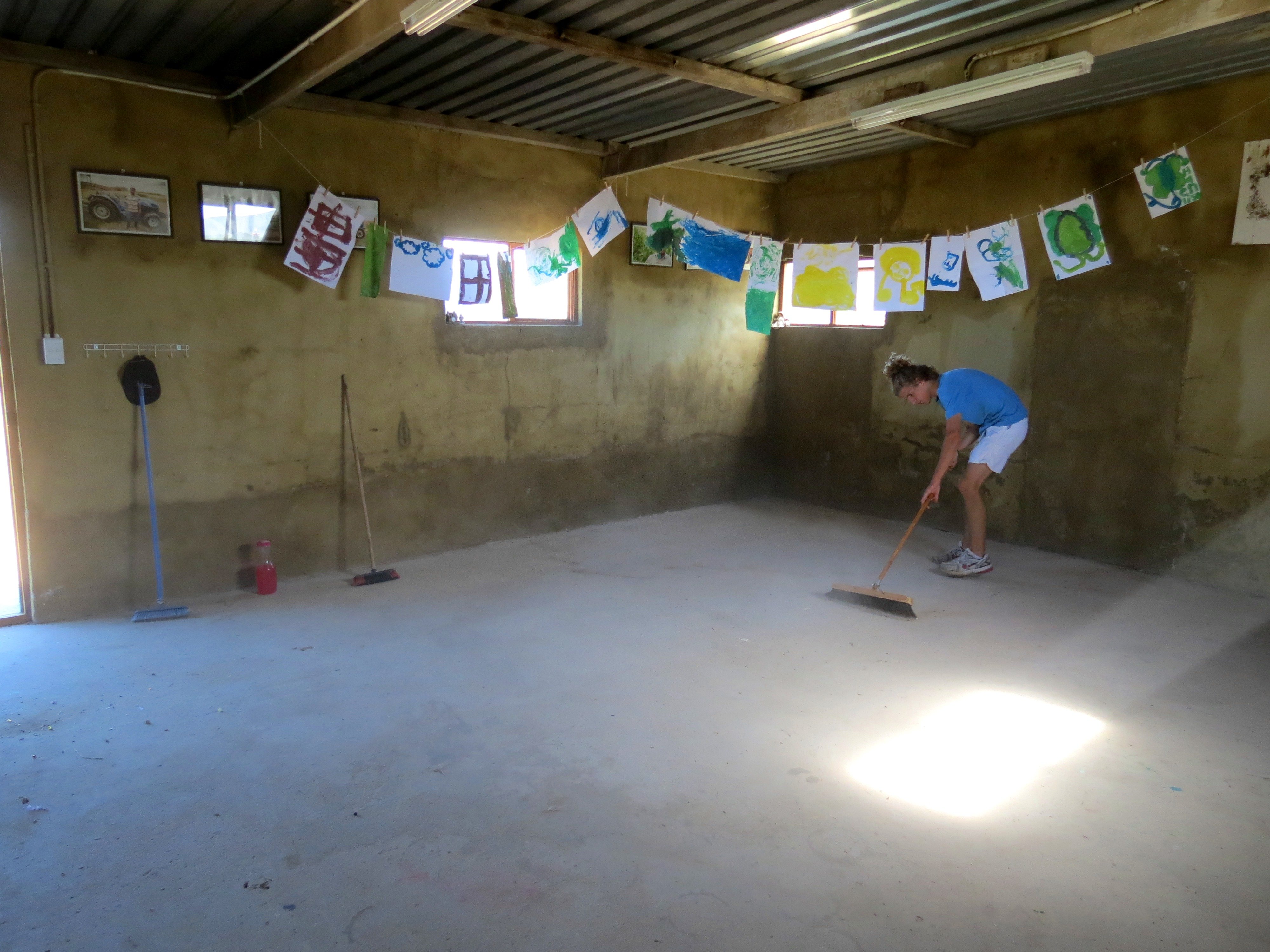 The classroom used by SEC was originally untreated concrete which affected the childrens' health, some of whom suffer from asthma. Build it provided SEC with 'stoep verf', rollers and Dylan's efforts whereby he organised a group to move the furnisher, do a stock take of the materials and layer paint the floor. A job nothing less than perfect was inevitable, thus the task took three days to complete.