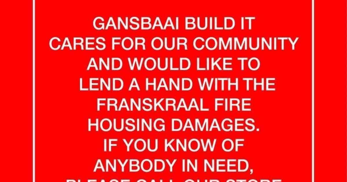 Gansbaai Build it cares for our community and would like to lend a hand with the Franskraal fire housing damages.