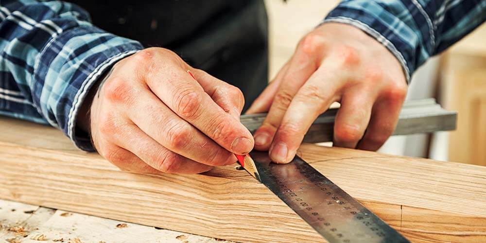 Measurements can be marked in various ways, depending on how accurate they need to be. A felt-tipped pen is easily read and can be used where accuracy is not too critical. A carpenter’s pencil is also ideal for easy-to-read measurements. It can also be quite easily rugged out when required. For very accurate marking of timber, use a marking knife or a craft knife. These not only mark but sever the fibres very slightly to enable further cutting to be very exact. The severed fibres leave a whisker-free cut edge.