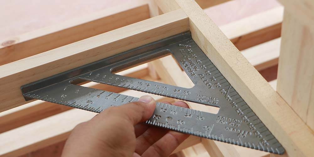 Squares are used to produce a line at right angles to an edge and to transfer one measurement to the opposite side of the material. The most basic square is the set square. Use a pencil or marking knife to mark your line against the steel edge.