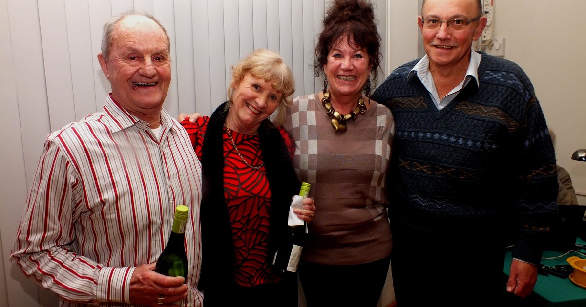 Foto: Vlnr is die wenners van die geluktrekking, Brain King en Ané Staunton saam met Margi Muller en Johan Wiese