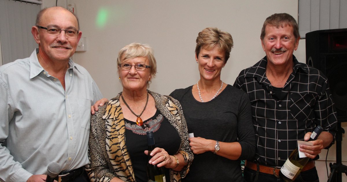 Foto: Vlnr is Johan Wiese, Tollie Thompson, Linda Kloppers en Jan van Zyl na afloop van die gelukstrekking tydens die Birkenhead Boothengelklub se maandelikse funksie. Foto: Linda Kloppers