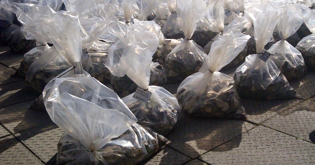Die polisie het Maandag inligting van die Georganiseerde Misdaad Eenheid ontvang dat perlemoen in Buffelsjag geberg word. Om 11:30 het hulle 'n houthut langs huis 27 oopgeforseer en 50 sakke vol ontskulpte perlemoen gevind.