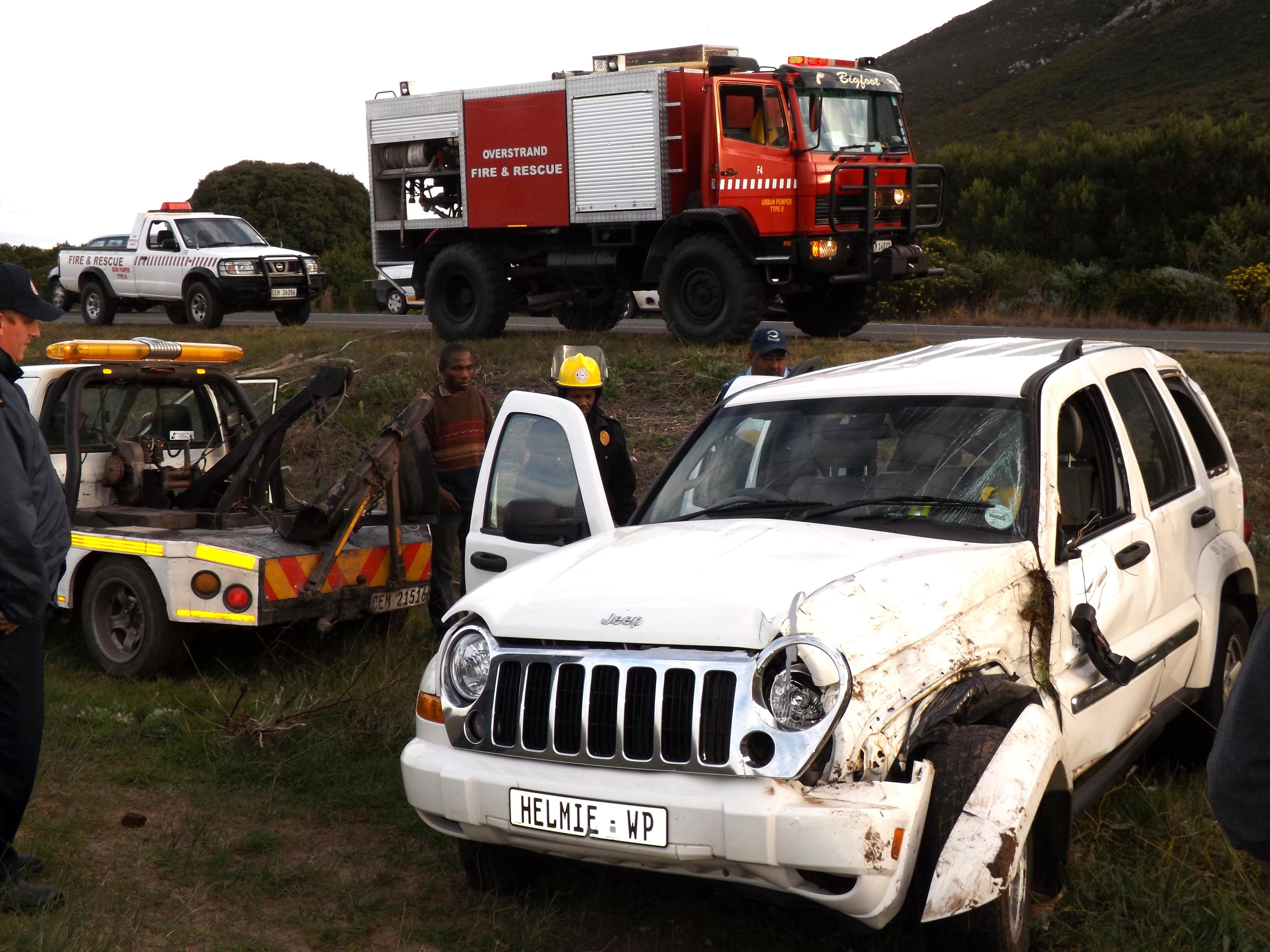 Die voertuig van Amanda de Vries, eggenote van wyle Helmie de Vries, wat ‘n dag na die roudiens naby Franskraal gerol het. Amanda sê sy het op die gruis langs die pad afgegaan en die stuurwiel te vinnig teruggeruk, waarna die voertuig gerol het en op die sykant tot stilstand gekom. Amanda is ongedeerd en sterkte word haar toegewens met die skok van die ongeluk kort na Helmie se afsterwe.