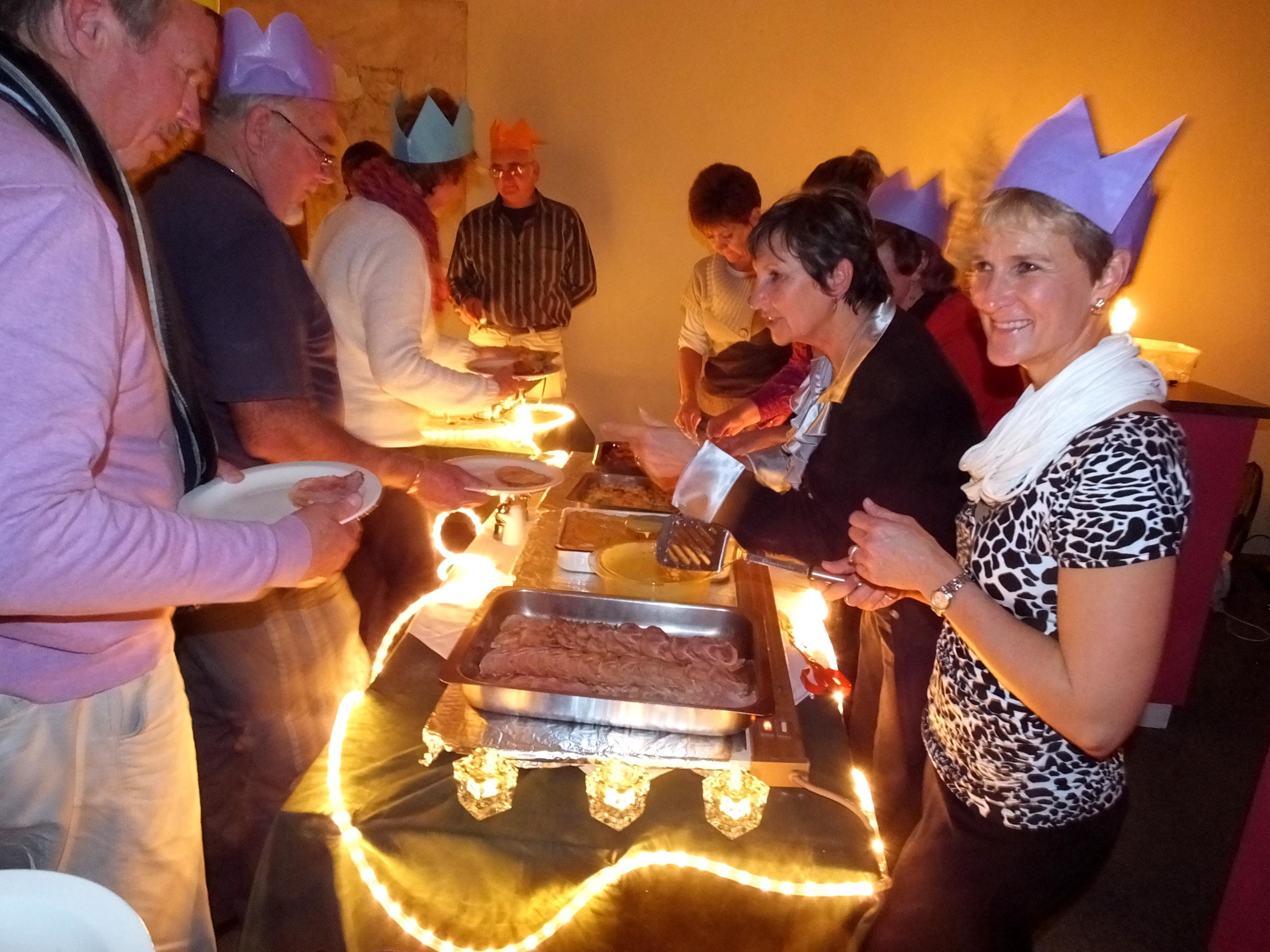 Die OMGEE Bediening het Vrydagaand heel gepas in snerpende koue 'n Winter Kersfeesete aangebied. Die saal is omskep in 'n towerland van liggies en 'n heerlike buffetete is voorgesit.
