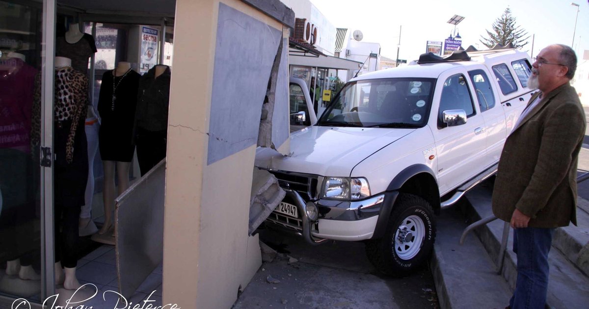 Hierdie keer was dit Wayne Paizes van bioMassives se Ford Ranger wat op Donderdag, 21 Augustus 2014 “die pad gevat” het - ook vanaf die Poskantoor, maar dié keer verby Studio Jo-Signs waar dit teen Gansbaai Djolof Shop (waar Dit en Dat voorheen was) se ingangsmuur tot stilstand gekom het - sonder Wayne agter die stuur.