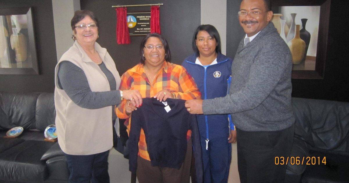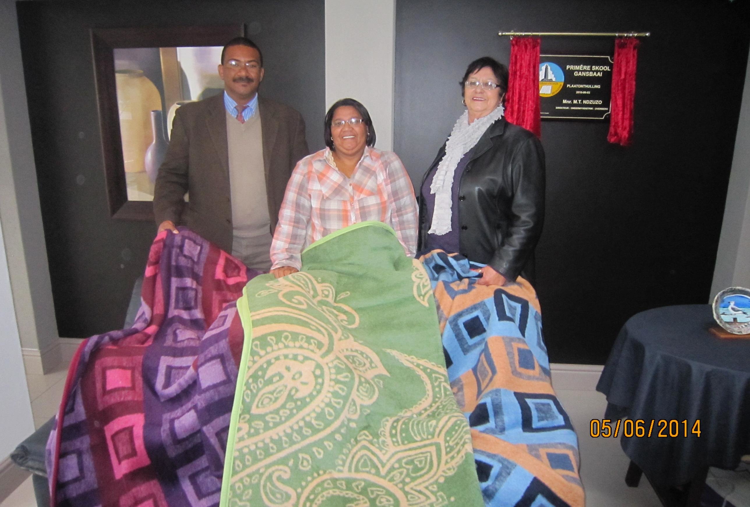 “Ek het die voorreg gehad om onlangs weer 40 truie en 6 warm komberse aan Gansbaai Primêr se skoolhoof, Tommy Volkwyn, Ellen Dunston en Carmen Hans van die skool te kon oorhandig,” sê Ivy.