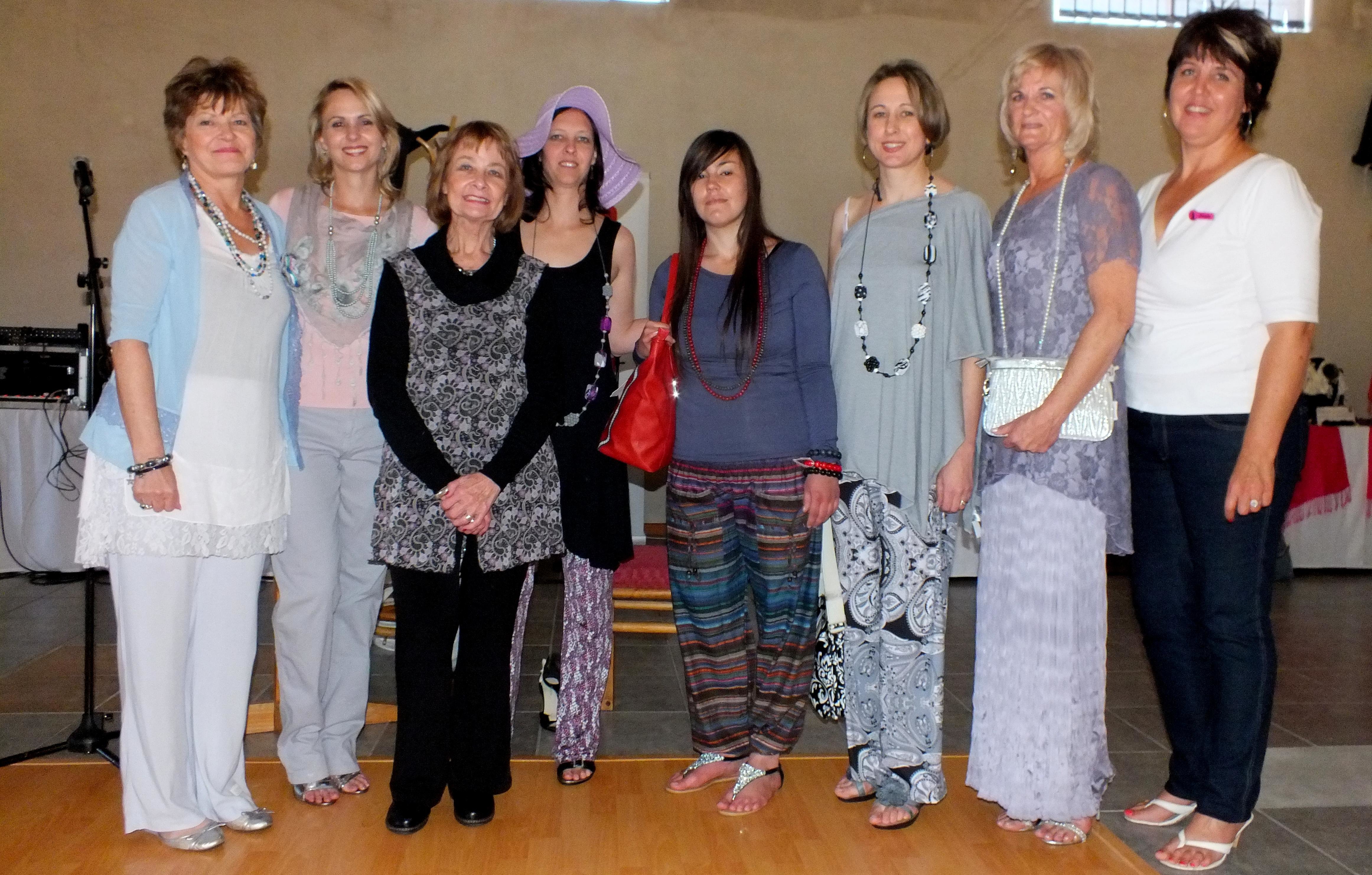 Die volgende Gansbaai modelle (alfabeties) het hul uitstekend van hul taak gekwyt: Alida Calitz, Angelique van der Berg, Annemien van der Merwe, Jackie Lombaard, Marietjie Gerber en Stella Swart. Die Damesoggend is verder opgekikker met Lizette Janse van Rensburg se sang en aanbieding, met die tema: “Toe bars my ‘bubble’, hoe gaan ek ooit weer vonkel?”