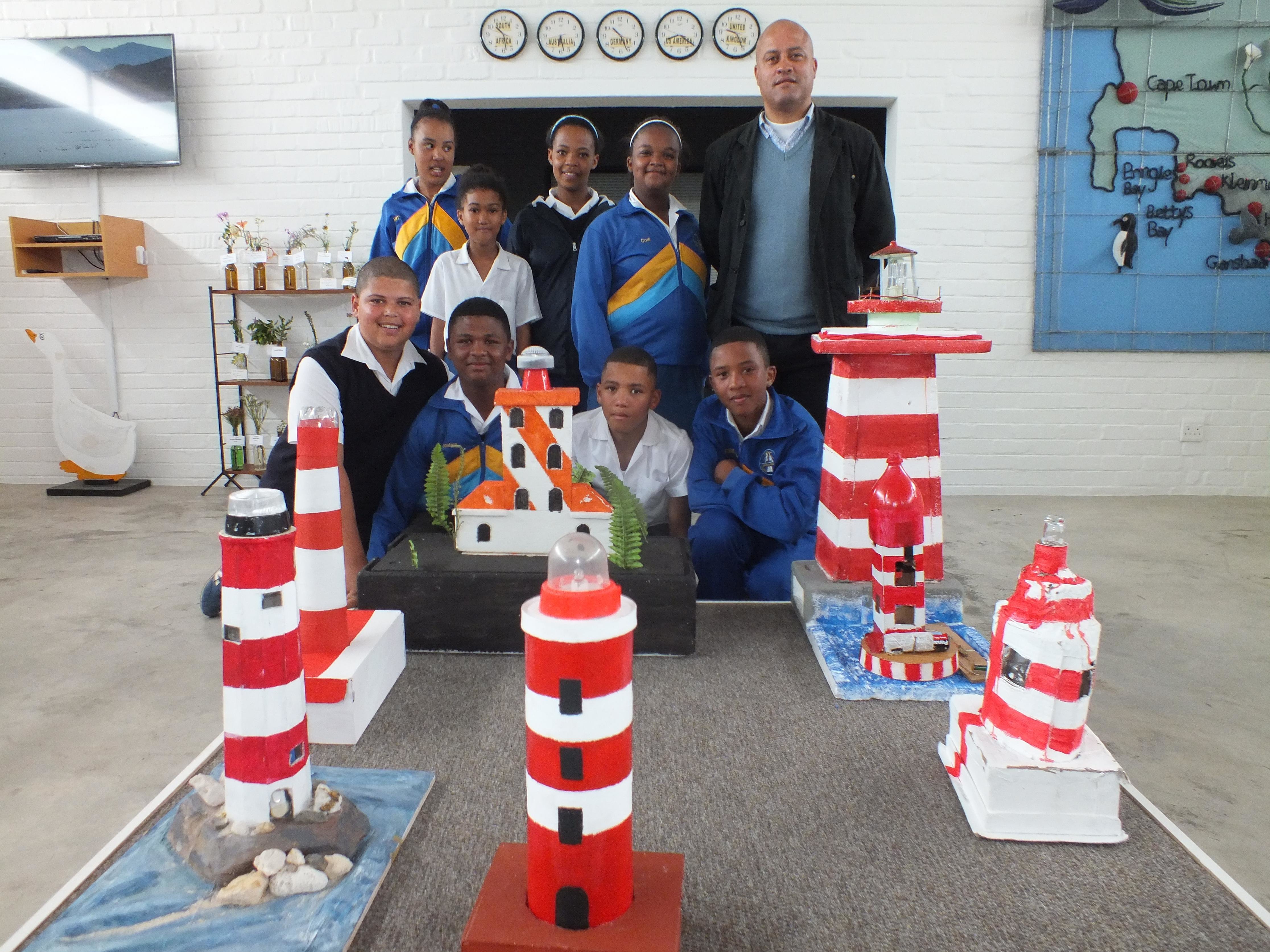 “Die leerders se projek vir Natuurwetenskap in die derde termyn, moes aangepak word en die leerders het fluks aan die werk gespring,” vertel Gansbaai Primêr se Adjunk-hoof, Niel Pedro van sy Gr 6-klas. Die leerders het op die bou van vuurtorings besluit wat in Gansbaai Toerisme se vertoonlokaal uitgestal word. Hulle het baie moeite met hoofsaaklik afvalmateriaal gedoen en perfekte vuurtorings gebou - kompleet met werkende vuurtoringligte.