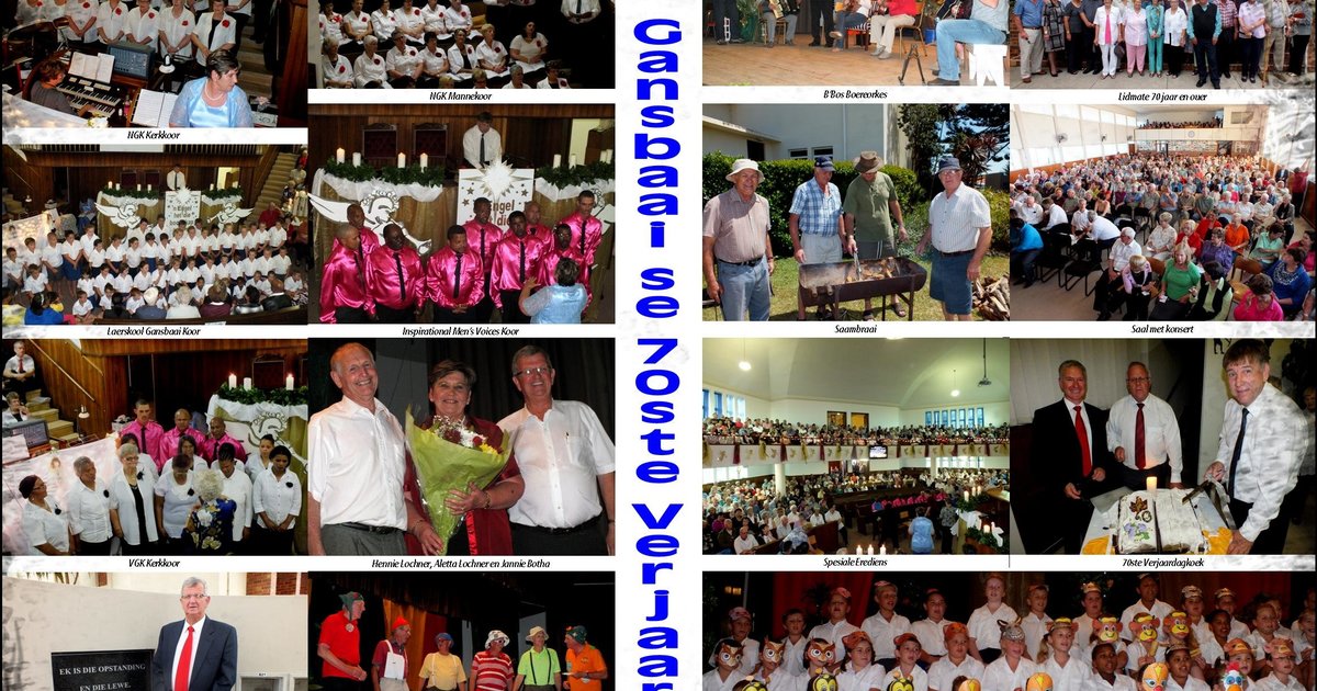 Gansbaai NG-Gemeente het die afgelope naweek hulle 70ste bestaansjaar op ‘n dankbare wyse teenoor die Here se genade gevier. Die tema was: “Christus is vandag, gister en môre dieselfde tot in ewigheid”.