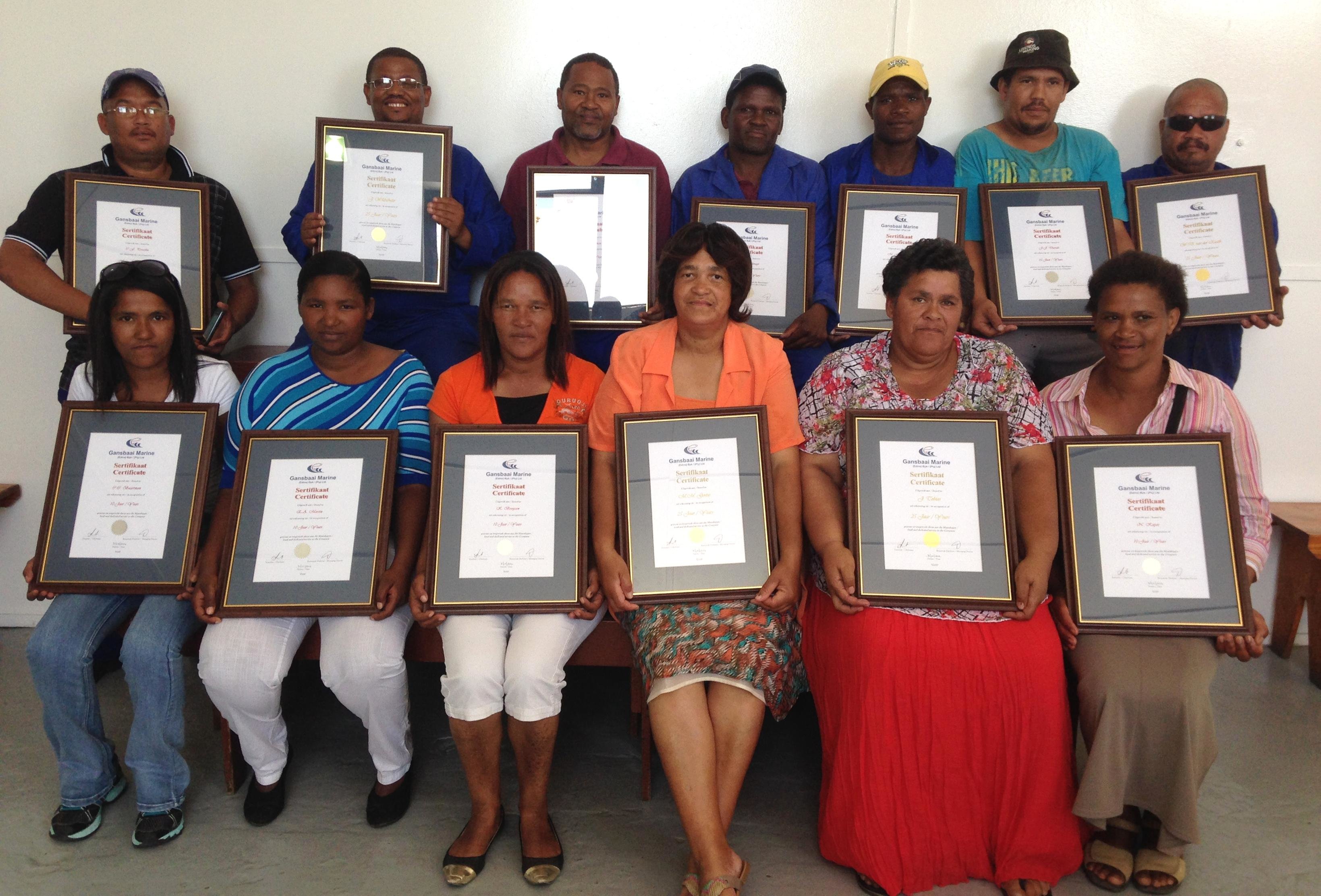 Gansbaai Marine kan gewis spog met tevrede personeel. Jaarliks word 10- en 25-jaar geraamde dienssertifikate uitgereik en jaarliks is dit ‘n groot groepfoto wat geneem word. Gelukkige en tevrede personeellede kan sonder twyfel aan vele diensjare gekoppel word.