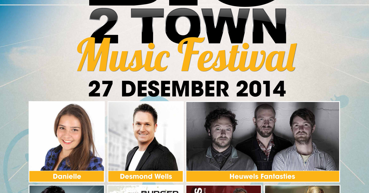 Die fees sal oud en jonk vermaak met kunstenaars soos Heuwels Fantasties, Snotkop, Hugo Nieuwoudt, Nic Stevens en nog baie ander. Hierdie dag mag niemand mis nie. Dit is 'n fantastiese aanloop om die Nuwe Jaar tegemoet te gaan.