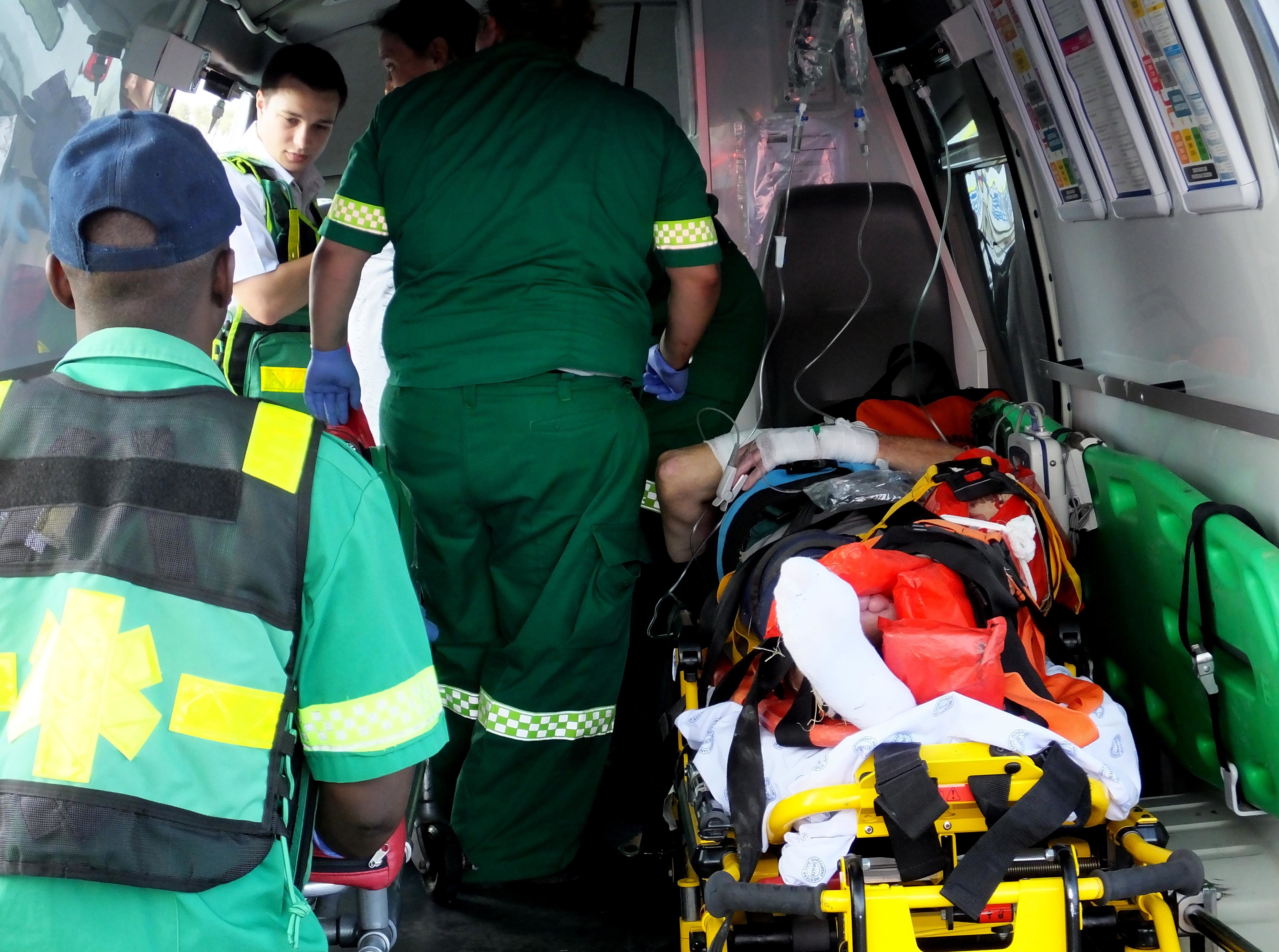 Die ongeluk het op die Kleinbaai-pad in die omgewing oorkant Blompark se woongebied plaasgevind. ‘n Inwoner van Kleinbaai het met sy voertuig langs die pad stilgehou om sy huishulp op te laai. Kobus het op sy motorfiets aangekom en die voertuig gesien en wel stadiger gery. Na bewering was die aankomende motorfiets in die truspieël van die voertuig se “blindekol” en die bestuurder het ‘n U-draai gemaak, met Kobus direk langs hom. Cassie Carstens van Overstrand Medical Response was vinnig op die toneel en die nodige mediese bystand is verleen. “Ek is baie dank aan Cassie verskuldig vir sy deeglike hantering van my besering,” het Kobus agterna in die hospitaal gesê. Hy is gestabiliseer en inderhaas per ambulans na Hermanus Mediclinic vervoer. As gevolg van die geweldige swelling, asook die skoonmaak van die lang en gapende wond oor die volle lengte van sy onderbeen, kon Kobus eers op Saterdag, 10 Januarie 2015 geopereer word waartydens ‘n staalpen in die skeengedeelte van sy been ingesit is. Op Maandag, 12 Januarie 2015 moes Kobus ‘n veloorplanting ondergaan om die oopgevlekte been te bedek. As gevolg van die geweldige bloedverlies gedurende die paar dae, het hy met die ter perse gaan van hierdie berig reeds 6 eenhede bloed ontvang. Verdere operasies, onder andere vleisoorplantings, wag nog op hom. Intussen het Kobus gestabiliseer en is vanuit die Intensiewe Sorgeenheid na ‘n saal oorgeplaas om aan te sterk. Hy verduur geweldige pyn en die been word konstant onder verdowing gehou. Dinsdagaand het hy Gansbaai Courant telefonies meegedeel dat hy gedurende die dag die ergste pyn nóg ervaar het. Sy bekende motorfiets, waarmee hy gereeld saam met Gansbaai se motorfietsklub, die Scattered Links, Overberg Chapter, aan besigtigingsritte en liefdadigheidsprojekte deelgeneem het, asook aan die klub se jaarlikse winter-motorfietsritte na Sutherland, sal waarskynlik afgeskryf word. Sinvolle opmerkings is teenoor Gansbaai Courant gemaak oor die groot risiko verbonde aan U-draaie met voertuie, veral vir die op- en aflaai van huishulpe op die Kleinbaaipad. “Daar is ‘n groot parkeerarea regoor Gansbaai Academia beskikbaar wat veilig vir hierdie doel benut kan word,” het iemand wat verkies om anoniem te bly, gesê.