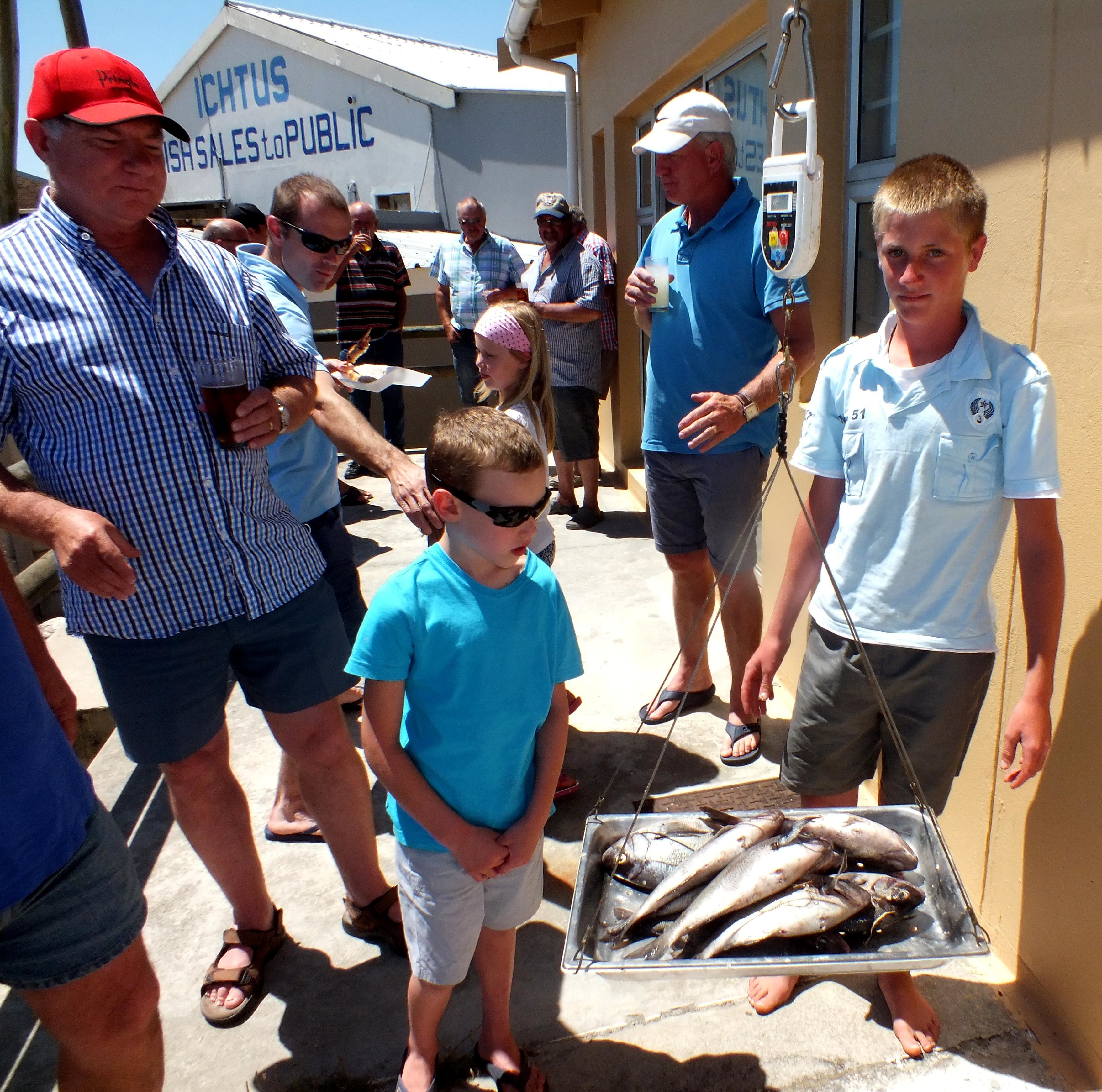 Volledige uitslae is soos volg: swaarste vis, De Wet Gilliomee (wit steenbras - 5.3kg, foto: Gansbaai Courant, 8 Januarie 2015); 2de swaarste vis, Jean Downing (rooi roman - 2kg); swaarste sak, Jean Downing - 6.9kg; 2de swaarste sak, De Wet Gilliomee - 5.85kg; swaarste bootgemiddeld, Oupa van Ben Uys - 3.738kg; 2de swaarste bootgemiddeld, Relêks 2 van Jean Downing - 3.275kg. Dixie Walsh het vir die swaarste damesak (2.7kg) gesorg, met JP Uys met die junior swaarste sak (5.05kg). Die 1ste 3 voorlopers in die onderskeie kategorieë vir 2015 is: Bootkampioen - Kayalami van Cederic van der Vyfer (6.34kg); Oupa van Ben Uys (5.40kg); Relêks van Jean Downing (4.55kg). Mans Visvangkampioene - Jean Downing (9.60kg); Ben Uys (6.40kg); Danie Fourie (6.20kg). Dames Visvangkampioen - Dixie Walsh (2.7kg). Junior Visvangkampioene - JP Uys (7.55kg) en Hennie Groenewald (1.45kg).