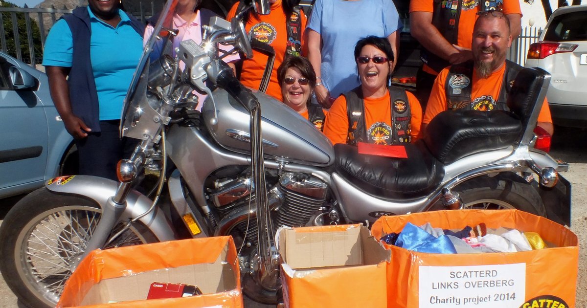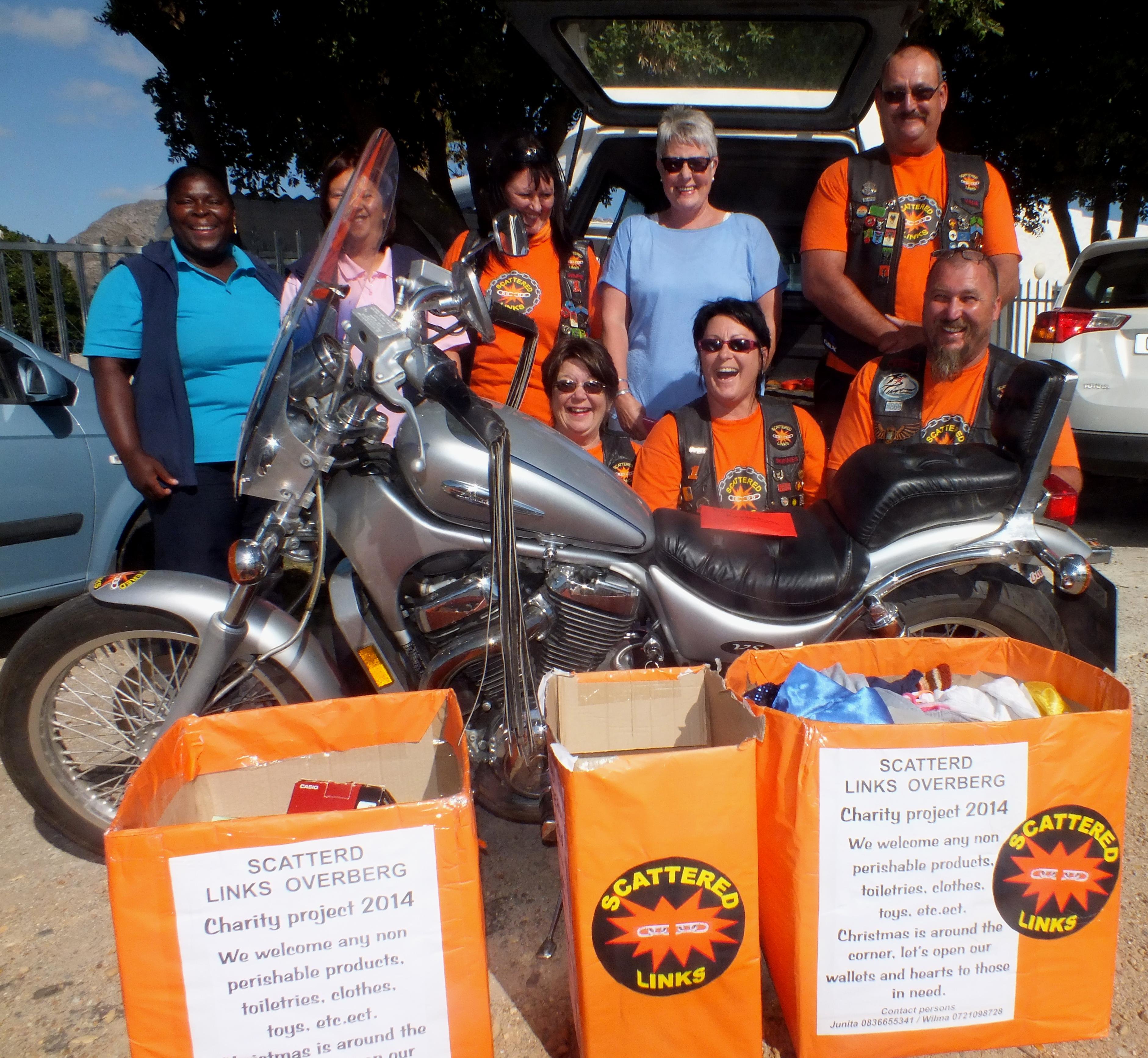 Dit mag snaaks klink, maar hier word na die Scattered Links, Overberg Chapter verwys wat hul motorfietse in die rigting van die Gansbaai Elim Huis laat dreun het. Kort gelede was hulle by Maretha Geldenhuys van Gansbaai Helpende Hand. Hierdie togte van Gansbaai se motorfietsers spruit voort uit hul Desembermaand se liefdadigheidsprojek met “Oranje-kleurige Kartondose” in etlike besighede in die dorp.