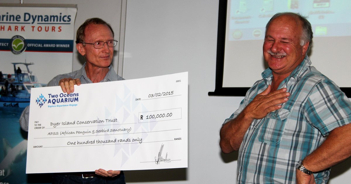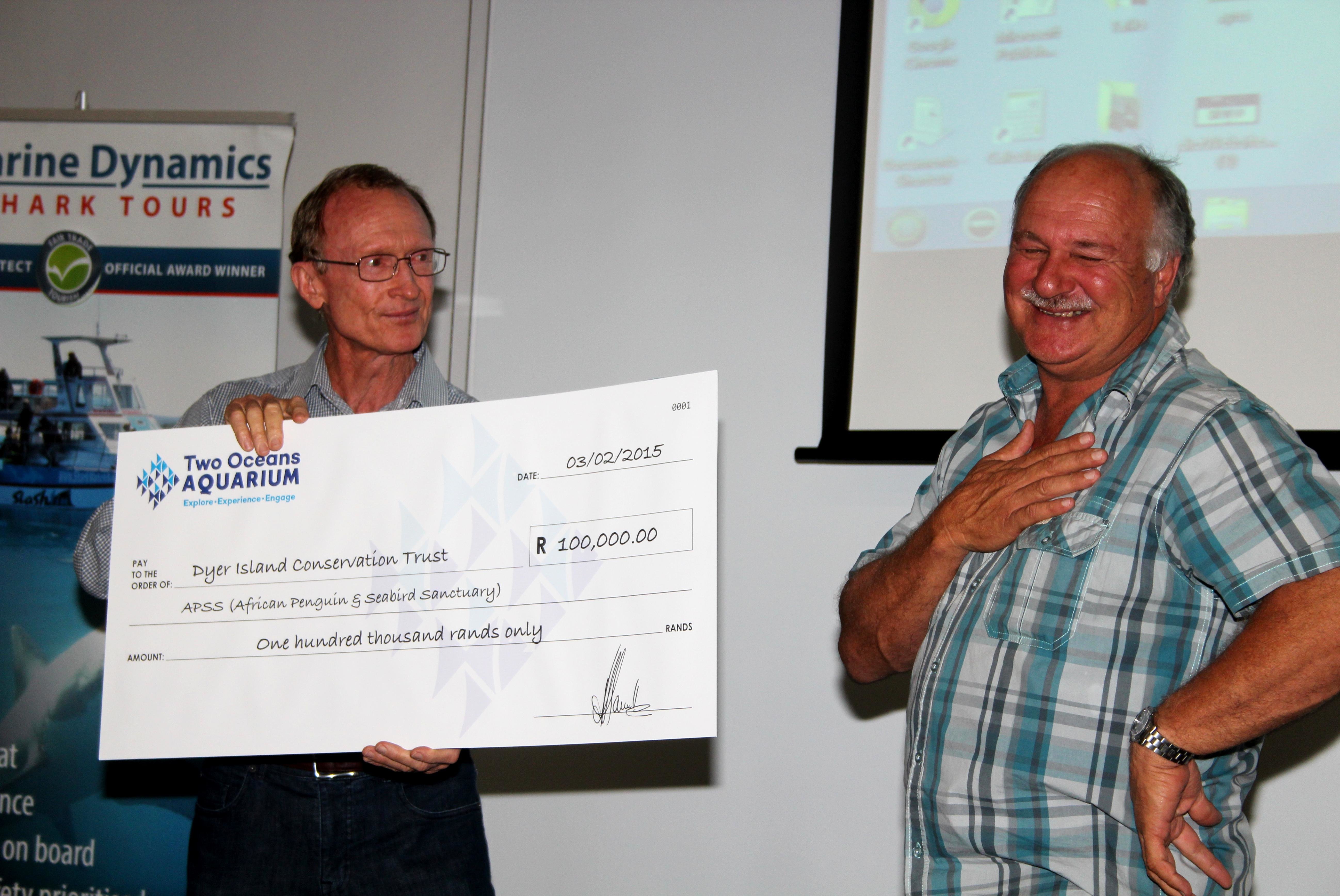 Wat Wilfred as ‘n bemarkingsveldtog vir die sentrum (veilige hawe vir die Afrika pikkewyn en seevoëls) beskou het, het omgeswaai na ‘n skenking van R100,000 wat die bewaringsbewuste Wilfred se voete onder hom uitgeslaan het. Hierdie enorme skenking aan Dyer Island Conservation Trust (DICT), waarvan Wilfred die stigterslid is, was afkomstig van die Twee Oseane Akwarium.