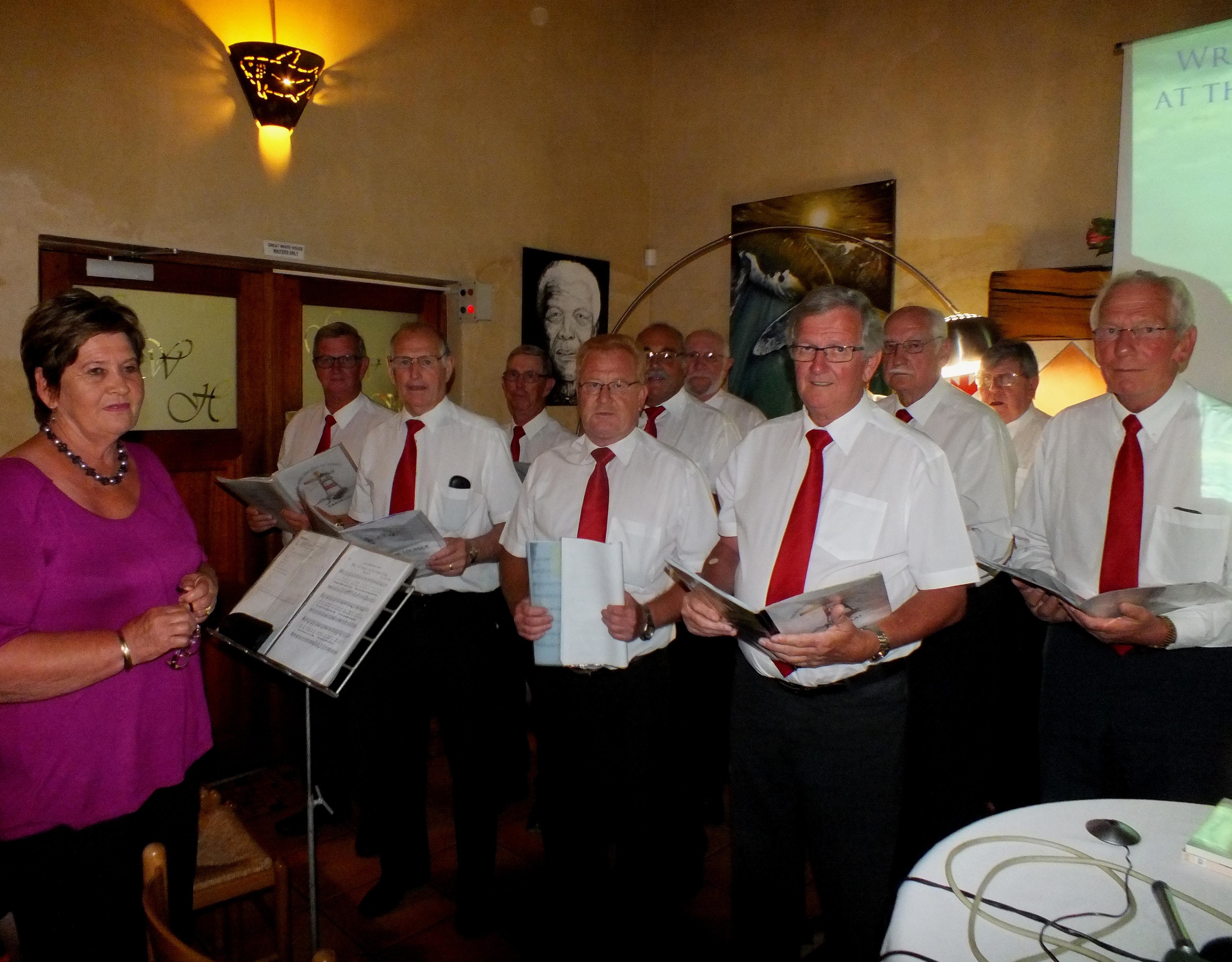 Die verrigtinge het in die Great White House, Kleinbaai afgeskop. Die gewilde Mannekoor van die NG Kerk, onder leiding van Aletta Lochner en begeleier Annelene Reinke, het geopen met die sing van “O Vader in die Hemel Hoog”.