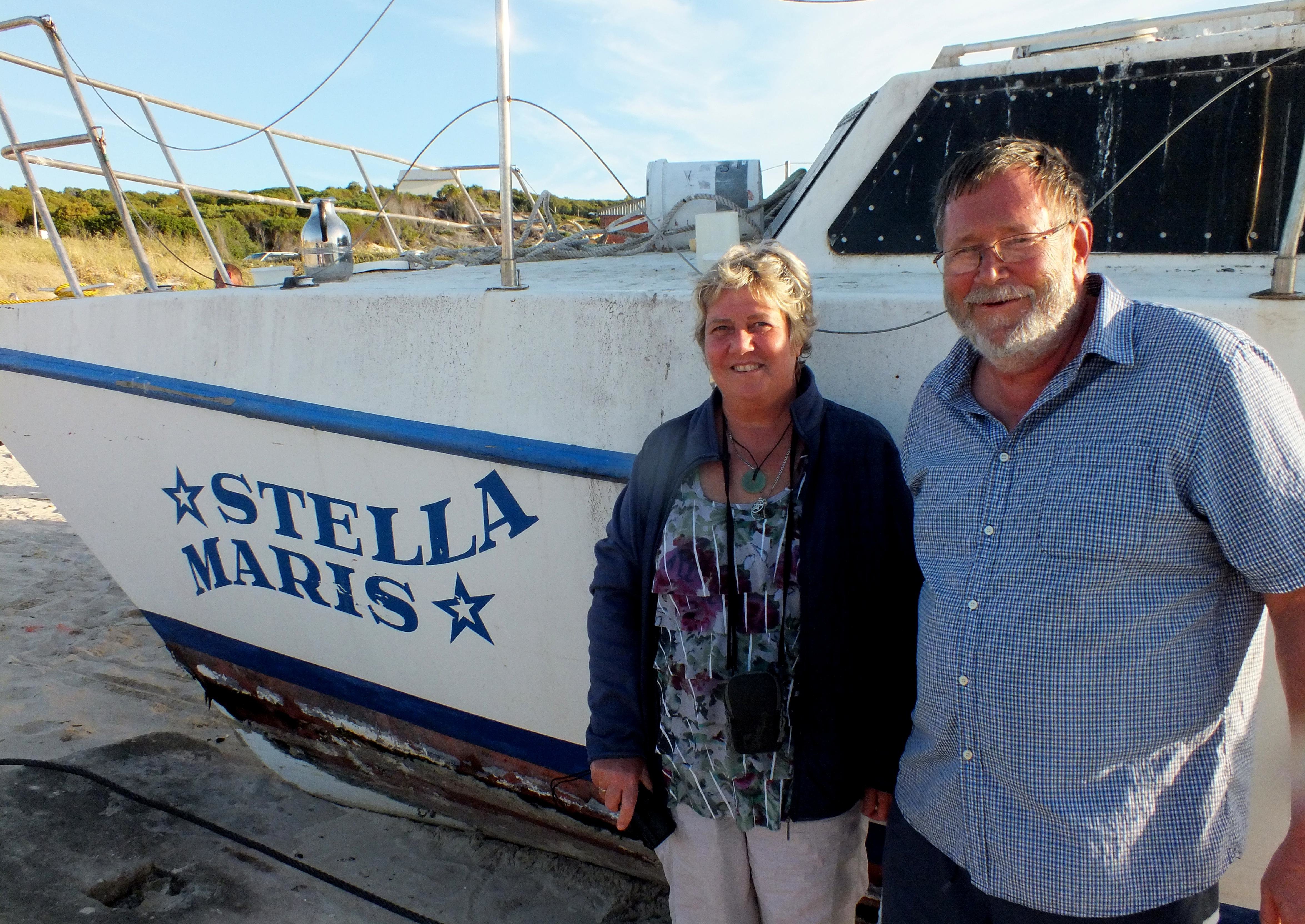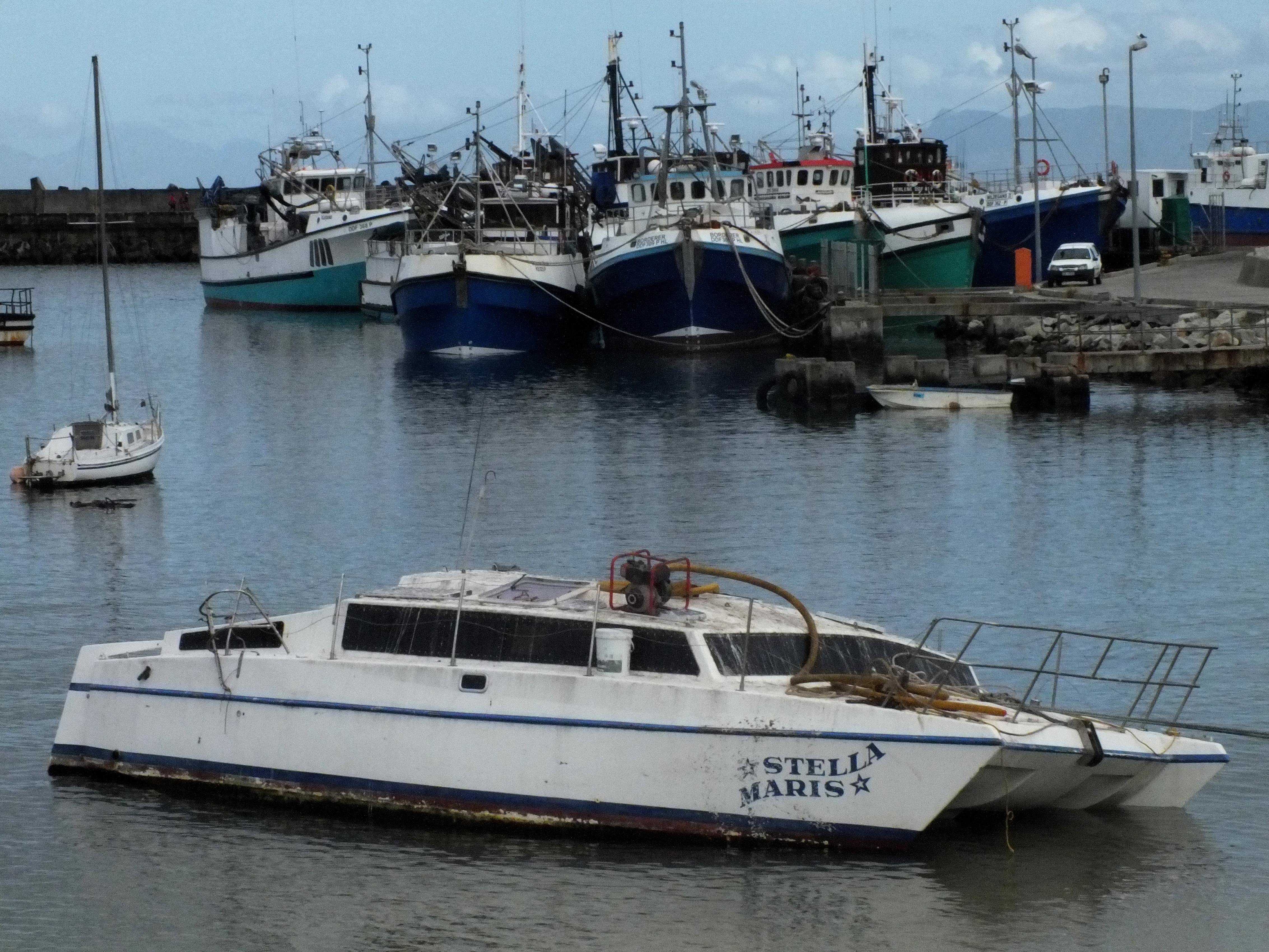 Vele hawe-wandelaars en besoekers aan Gansbaai se nuwe hawemuur moes al gewonder het oor die 33vt Dean Catamaran seiljag, Stella Maris, wat al vir sowat 10 jaar roerloos daar vasgemeer is - behalwe wanneer die storms woed. “Ek het die seiljag sowat 10 jaar gelede in 2005 in Simonstad gekoop met die doel dat ek en my eggenote, Diedré, gereeld vir ontspanning see toe kan gaan,” vertel Johannes Grobbelaar van Kleinbaai. “My ontnugtering was groot toe my vrou, ná ‘n paar keer se rondvaar hier naby rond, gesê het dat dié gerondvaardery nie vir haar bedoel is nie.” Johannes sê hy het die seile afgehaal en verkoop in die hoop dat minder seevoëls daar sal pla, maar dit het nie gehelp nie. Op haar tyd was die Stella Maris (uitgespreek as “Maríés”) ‘n prag-seiljag, maar met die jare wat verbygevlieg het, het verwering ernstig toegeneem. Johannes het vir 20 Februarie vanjaar ‘n plek in die droë dokke gekry, maar die een probleem na die ander het opgeduik. “Ek hoop nou om die boot weer behoorlik te laat herstel en dit as ‘n “huisboot” by Hermanus of by die Theewaterskloofdam te gebruik en gelukkig is die twee motors nog feitlik nuut,” sê Johannes. Die naam “Stella Maris” beteken “Ster van die See”, wat reeds in antieke tye as ‘n simbool gebruik is. Internetinligting dui op die volgende: “Stella Maris ‘sea-star’ is a name of Ursae Minoris or Polaris, the ‘guiding star’ (also ‘lodestar’, ‘ship star’ and ‘steering star) because it has been used for celestial navigation at sea since antiquity. Star of the Sea is a translation of the Latin title Stella Maris. The title was used as a guiding star for Christians, especially gentiles, whom the Old Testament Israelites metaphorically referred to as the sea, meaning anyone beyond the ‘coasts’. Under this title, the Virgin Mary is believed to intercede as a guide and protector of those who travel or seek their livelihoods on the sea.”