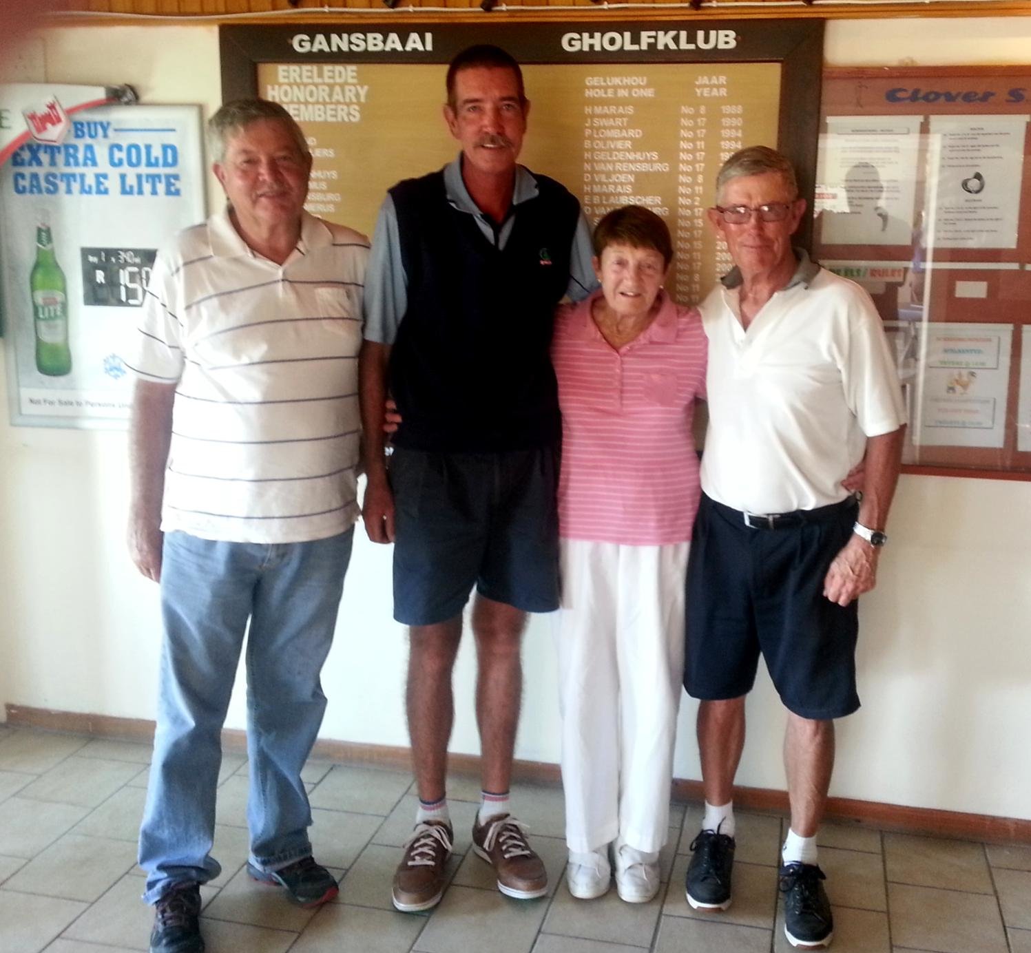 Die Dames is gewen deur June Rahn (kan julle dit glo sy is amper 80 jaar oud). Haar telling was 51 (oor 27 gate). Knap gedaan!!!!! Tweede was Marleen Davin 39 punte. Naaste aan die penne: Sextus Neethling, Solly Wessels en Johan Coetzee. Spogtwees: M Bury, Solly Wessels, Sextus Neethling en Andre Roos.
