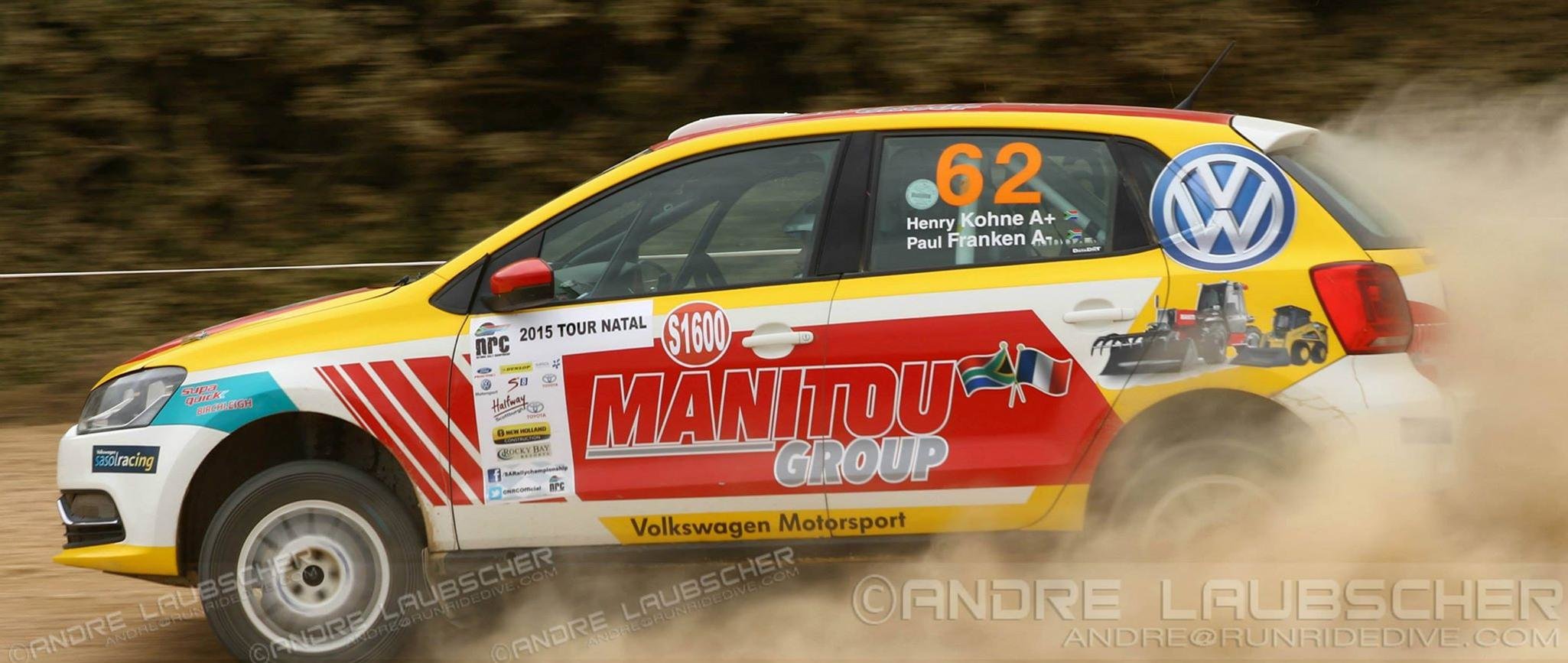 The Manitou Group team won three out of the eleven special stages in S1600. This giving them confidence, at the beginning of the season, to compete for more podium positions in class S1600. “We are pleased with our result on the Tour Natal Rally, to score maximum points at the beginning of the season will help a lot towards the Championship” added Paul Franken. The next event is the SASOL Rally in Sabie on the weekend of 17-18 April. The Manitou Group SA Rally team is supported by Manitou Group, Supa Quick Birchleigh, Volkswagen Motorsport and SASOL Racing.