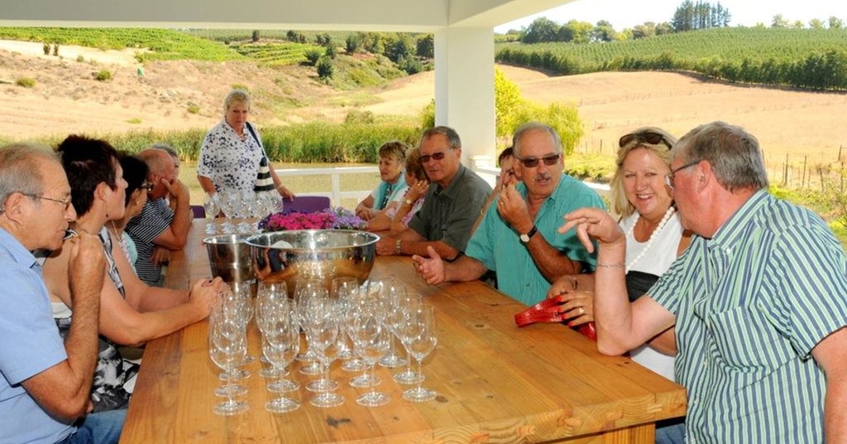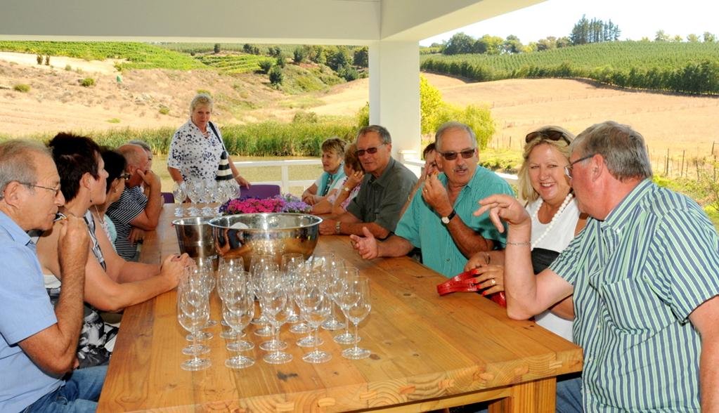 “Daar is uitstekende Sauvignon Blanc, Gewurstraminer Chardonnay en ‘n besonderse Pinoit Noir, die Estate Pinot Noir, en ‘n Noble Late Harvest as proe-wyne aangebied.” Daarna het die groep in die vallei opgedraai en die Highlands Road gevolg tot by Paul Wallace Wines, waar hulle deur Paul en Nicky onthaal is en ‘n besonderse Saugvignon Blanc geproe het.