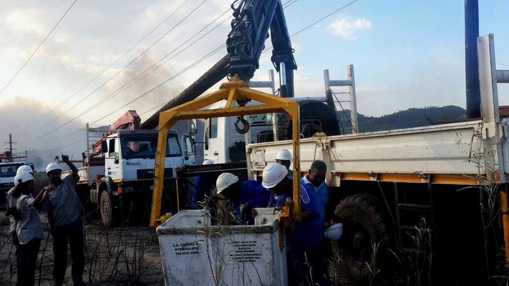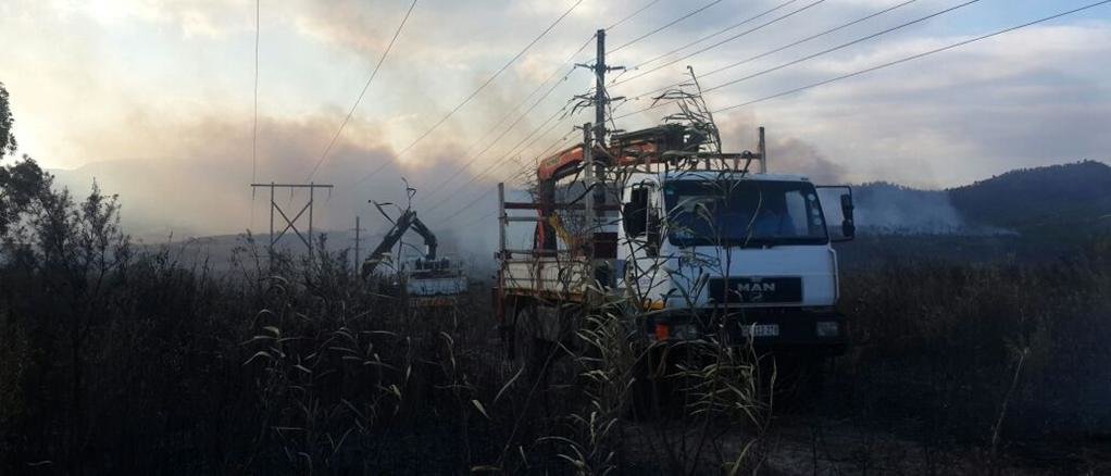 Due to raging fires, strong winds, choking smoke and fire brigade activities, Eskom technical staff could not imme-diately access the area. When the area was safe and the fire contained our technical staff immediately started with all the necessary reconstruction of the burnt structures. We used additional Eskom construction teams and contractors to rebuild the burnt structures enabling restoration to the affected areas.