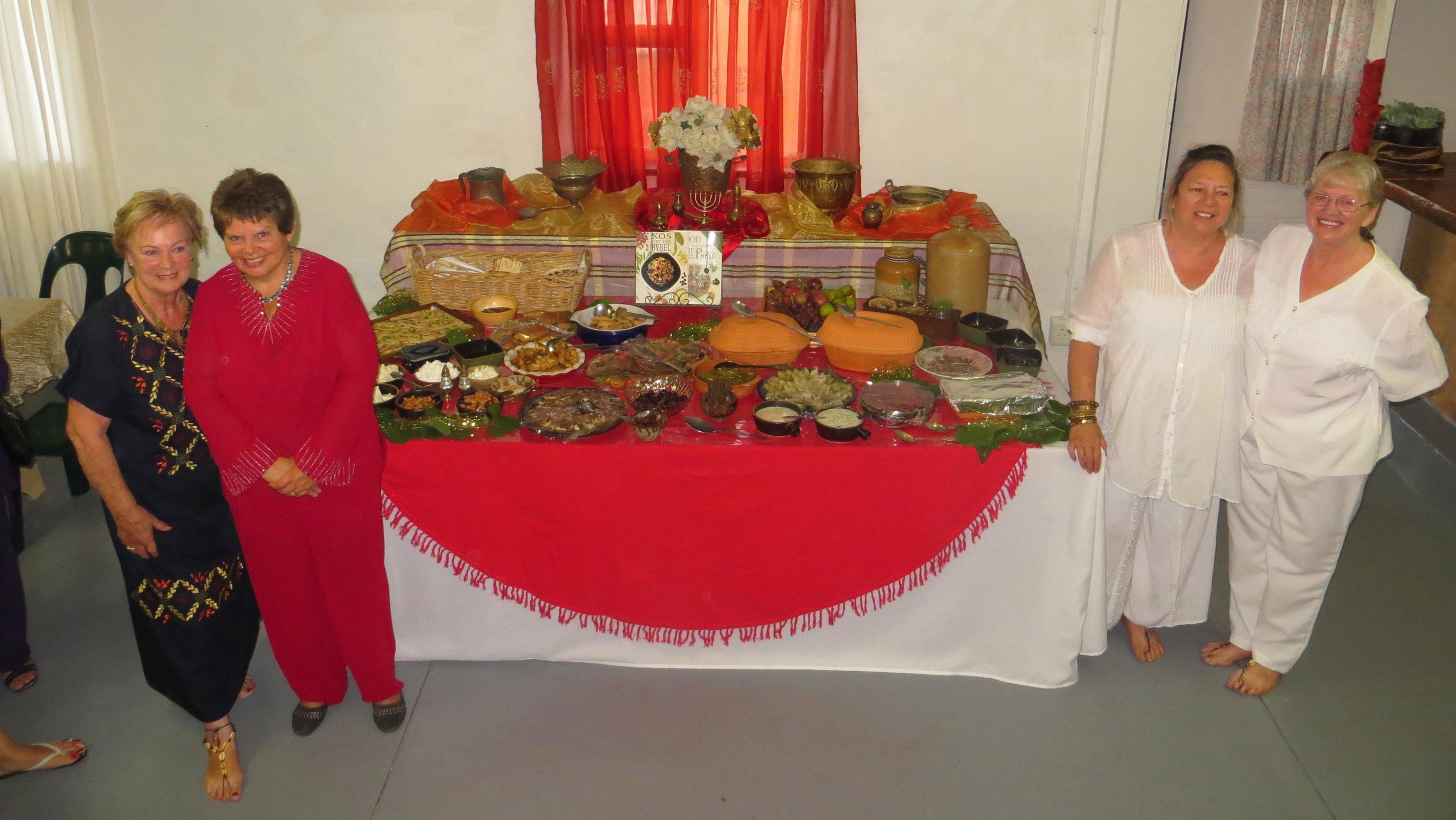 Vele Bybelse voorstellinge van destydse gewilde Bybelse-disse is uitgebeeld en te ete aangebied, soos onder andere Dolmades bestaande uit gebraaide sardiens wat in wingerdblare toegedraai is en die “wyn” is gemaak van rooiwyn waarin spesifieke speserye gekook is.