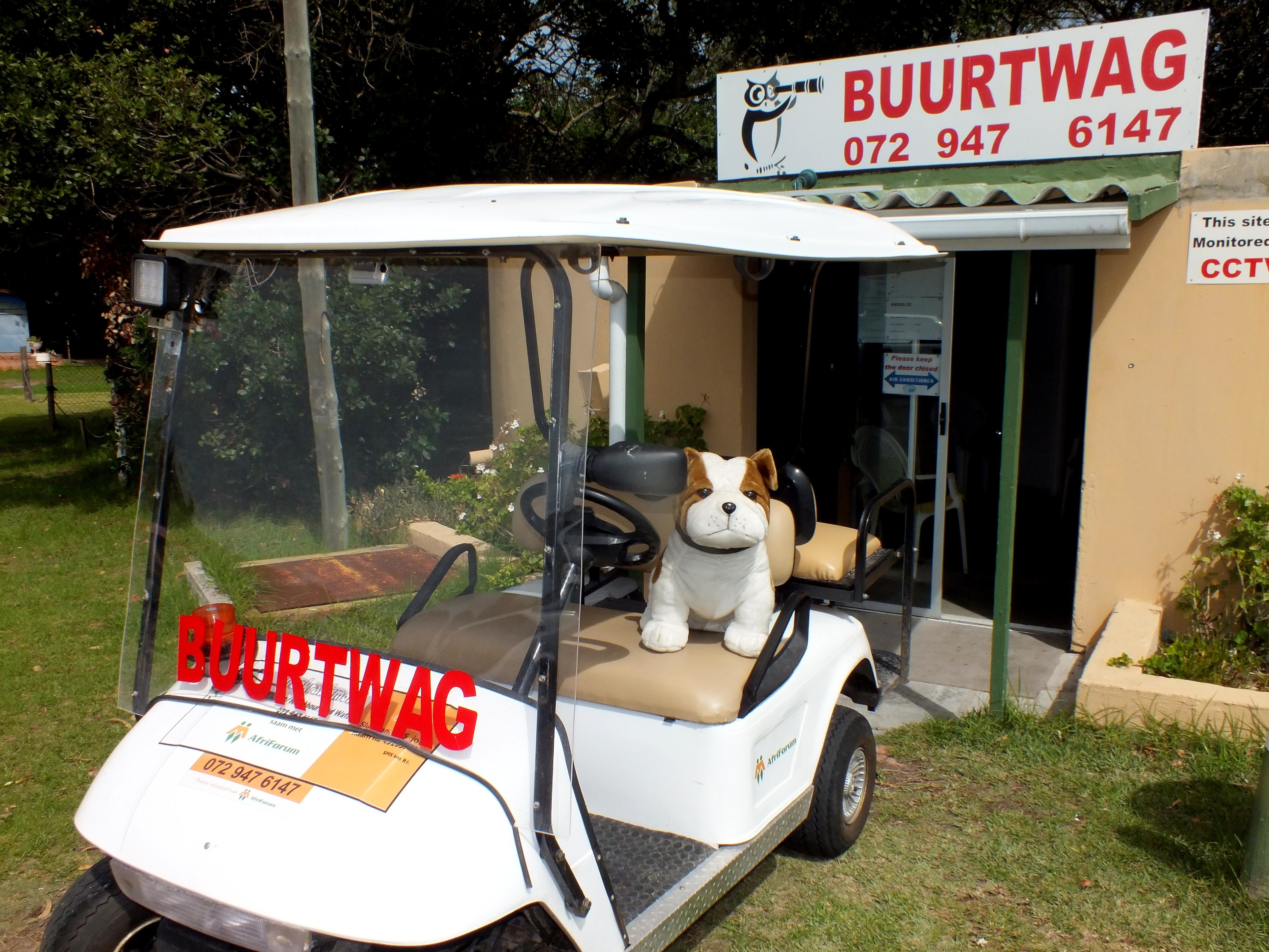 Uilkraal Buurtwag is nou 3 jaar oud, met die laaste inbraak 2 jaar gelede en die laaste diefstal in Oktober 2014. Hulle toerusting het ook goed toegeneem: 11 kameras; lede wat met ‘n radio, fitslig (720 lume), pepersproei en uitkenbare Buurtwagklere toegerus is; 3 gholfkarre, elk met ‘n ‘n selfoon wat binne 30 sekondes inligting wat van kameras ontvang word, deur enige beweging geaktiveer word (binnekort ook groter skerms vir foto’s); 4 wiel motorfiets vir vinige optrede; fietse vir dagpatrollies. “Ons kantoor is ook volledig toegerus met ‘n rekenaar, ‘n fotostaatmasjien en ‘n 42” TV skerm waarop fotos van kameras verskyn,” vertel Paul. “Hierdie toerusting is deur die gemeenskap geborg.”