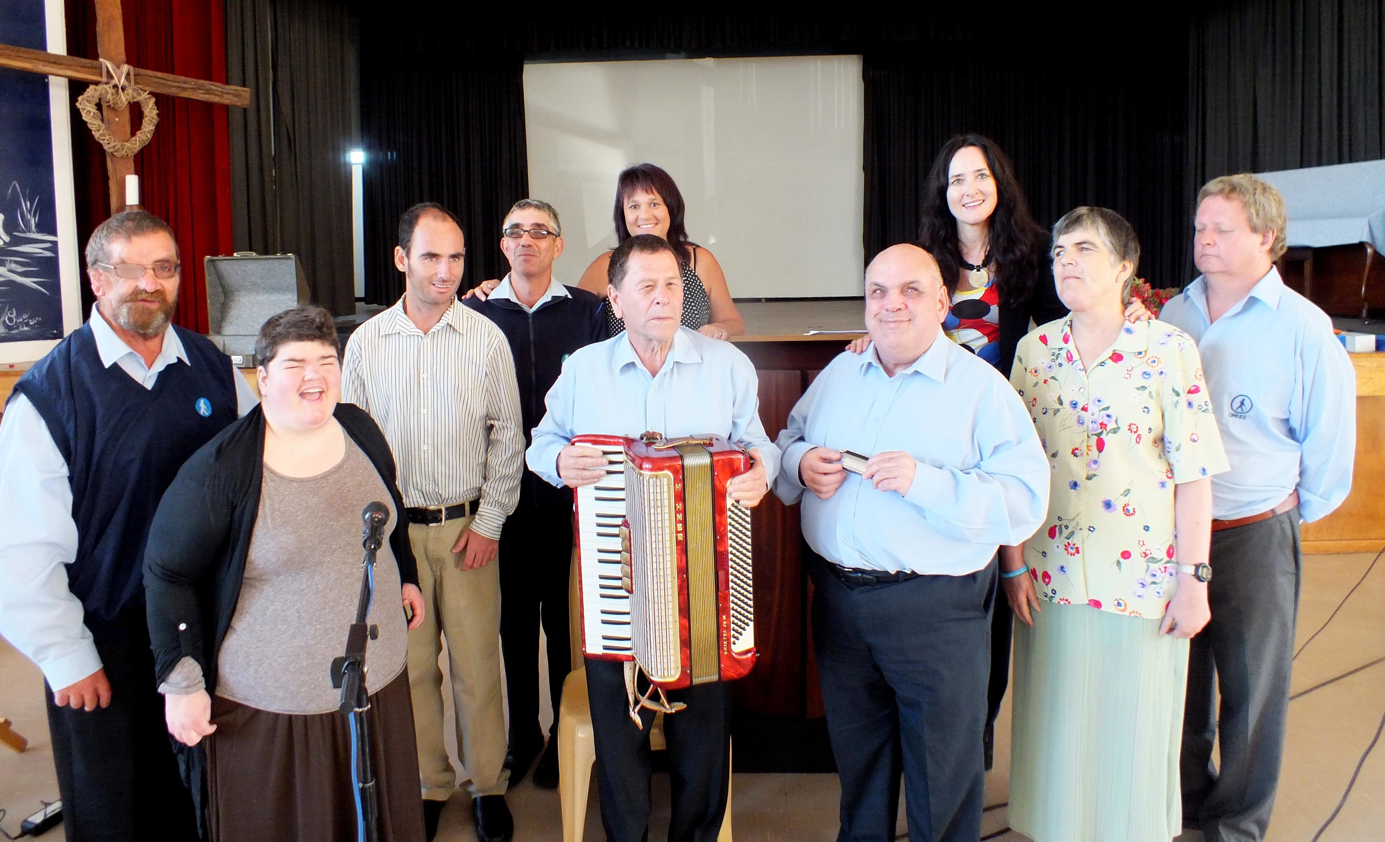 “Ek skaam my nie om te sê dat ek trane tydens hierdie diens afgevee het nie,” het ‘n manlike gemeentelid na afloop van ‘n lofdiens deur ‘n groep blindes in die Pretoriussaal gesê. Met die NG-gemeente se gesamentlike Erediens te Blompark, is die Pretoriussaal gebruik vir ‘n diens wat deur die Instituut vir Blindes in Worcester gereël is, aan te bied. Die saal was volgepak en daar is met groot afwagting uitgesien na die blindes se optrede - en niemand is teleurgestel nie. Irene de Bod van die Instituut het die leiding geneem en onder andere agtergrondgeskiedenis oor veral die volwasse blindes se onderskeie rolle aan die gemeente oorgedra. Die groep blindes het hul staal met hul musiekinstrumente, sang en getuienisse getoon. Een van hulle het met ‘n besonderse mondfluitjie (4 aanmekaar) gespeel wat hy by Radio Jakaranda as geskenk ontvang het. Een van die blinde meisies het ‘n Psalm uit die hoof voorgedra, asook ‘n artikel “gelees” oor hoe blindes hul ervaringswêreld beleef. “Kleur is onder andere ‘n voorbeeld,” het sy gesê. “Iemand sê byvoorbeeld die see is mooi blou, maar wat is blou as ‘n mens dit nog nooit gesien het nie?” Die diens is allerweë as ‘n “eye-opener” beskou en kommentare deur gemeentelede het daarop gedui dat hulle anders dink oor hulle gesigswaardes, wat as vanselfsprekend aanvaar word. “Ons bid julle die Here se seën toe met jul werksaamhede,” het ds Kotze gesê. “Dit was wonderlik dat ons eie blindheid vandag deur blindes weggeneem is om weer opnuut die genade van God te kon ervaar.” Belangstellendes kan die instituut by 023-347-2745 kontak, of stuur ‘n e-pos aan hulle by jacbotha@blind-institute.org.za. Hulle webtuiste is www.blind-institute.org.za.