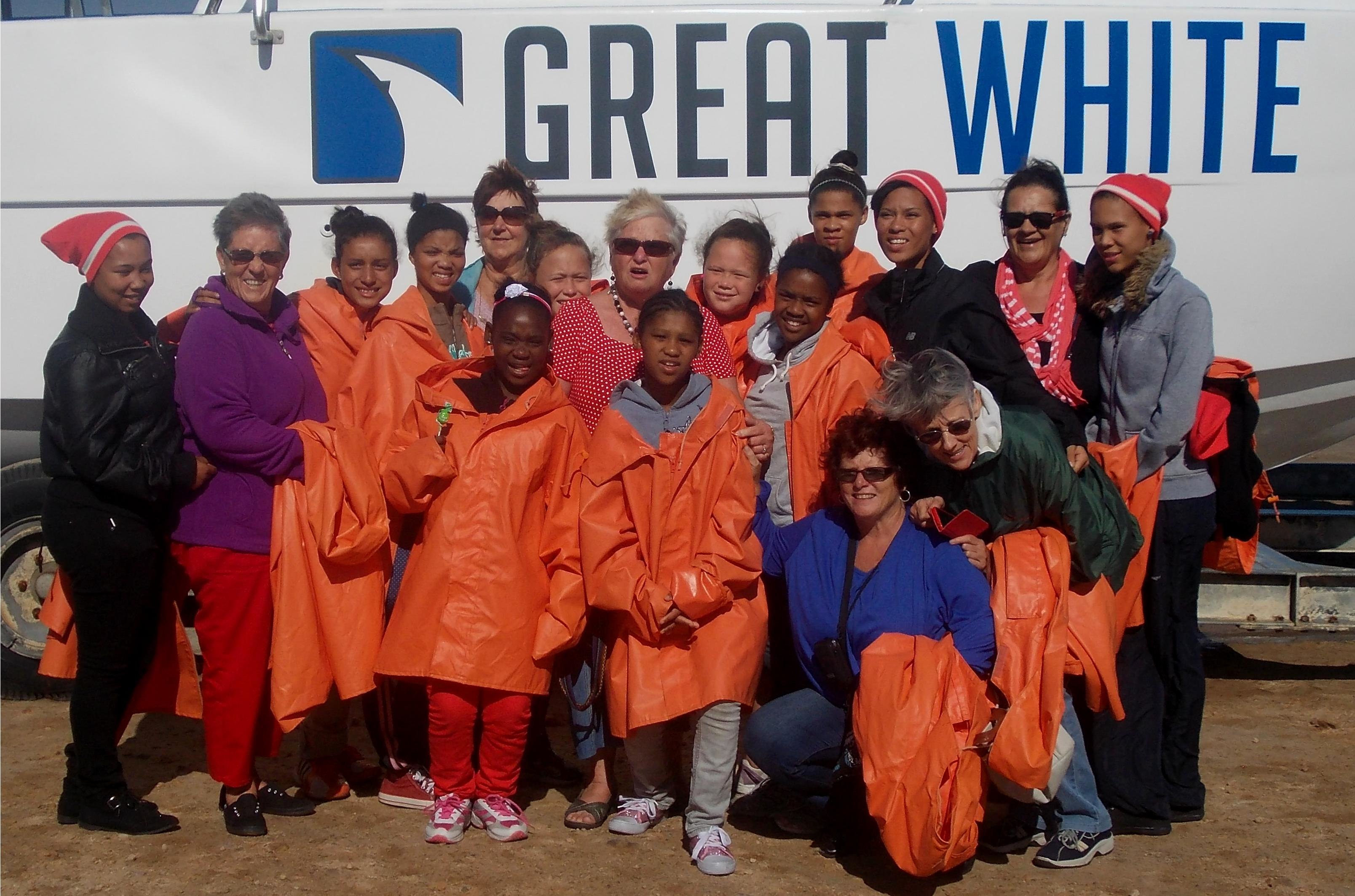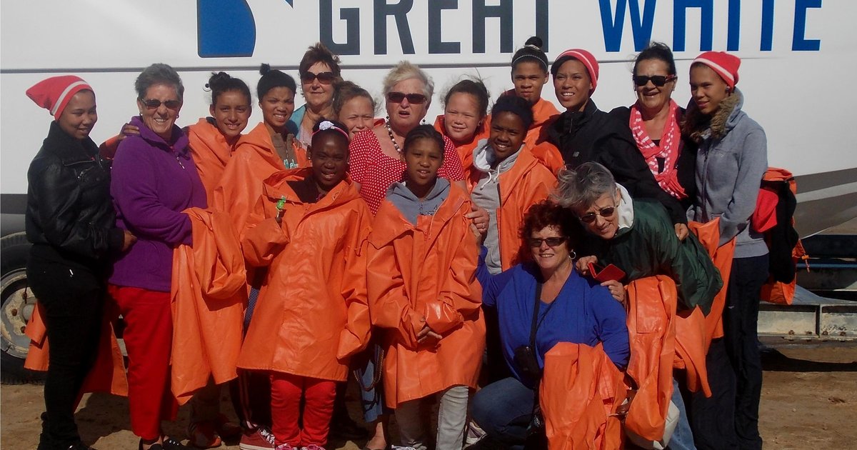 Daarna was “chips” en “hamburgers” aan die beurt. Later die dag was daar nog ‘n hoogtepunt: ‘n bootrit op Supreme Shark Diving se boot om na haaie te kyk, wat hulle gelukkig baie van gesien het. Terug by die kampterrein het ds Dennis Naidoo ‘n boodskap gelewer, waarna vleis gebraai is en nog pakkies uitgedeel is wat deur George geskenk is. Sondag is die Erediens in die NG Kerk bygewoon, met Zelda wat hul opregte waardering vir al die ondersteuning aan die gemeente oorgedra het.