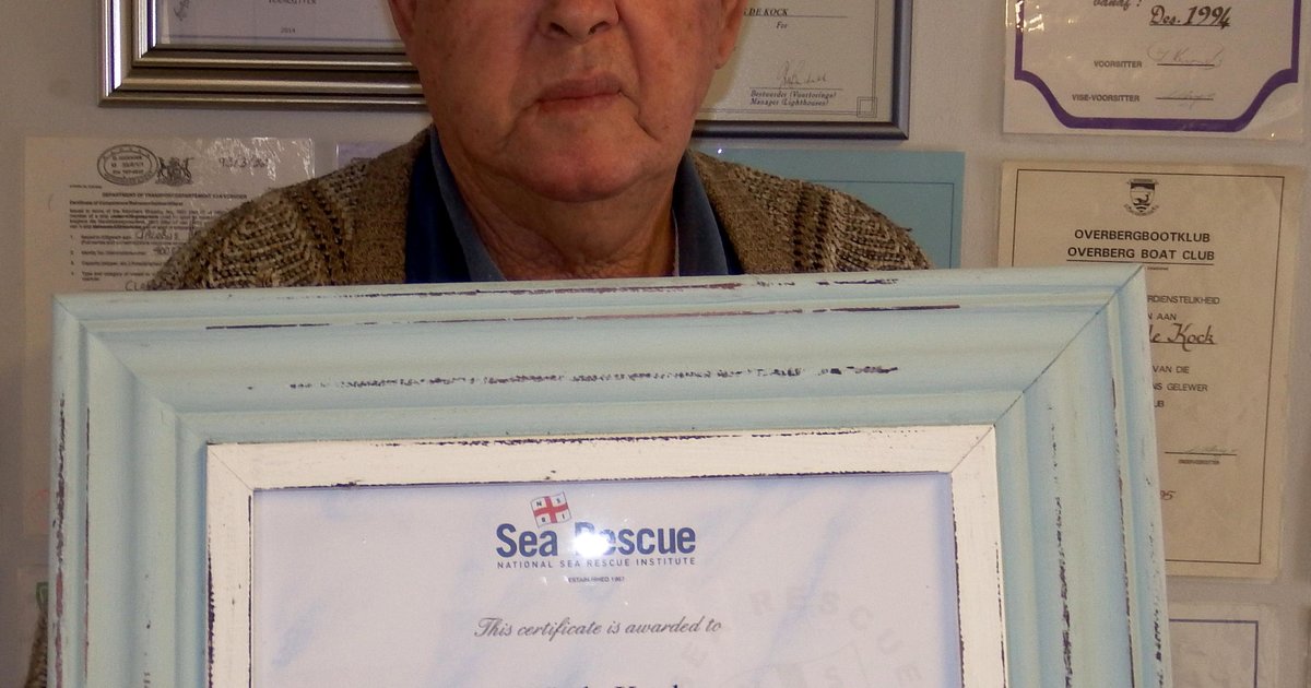 Die National Sea Rescue Institute (NSRI) het onlangs ‘n spesiale en geraamde sertifikaat aan Gansbaai se afgetrede SAMSA Ondersoek-/Veiligheidsbeampte, Koos de Kock, oorhandig.