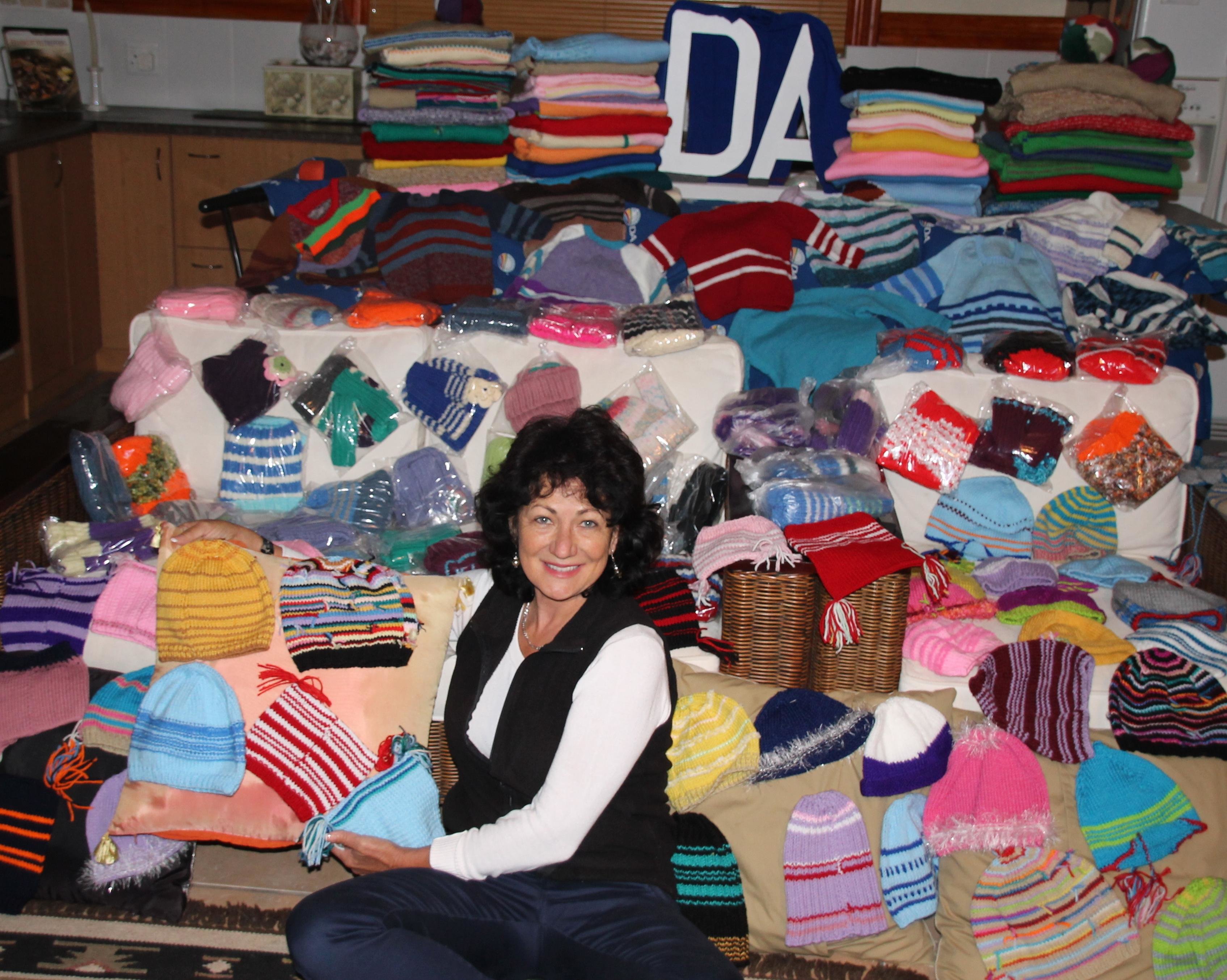 “Ek het selfs oproepe vanaf Pearly Beach, waar daar ook vlytig gebrei word, ontvang.” Sy sê sommige dames was ook bekommerd dat hulle net die kleuterkoppies en handjies gaan warm maak, maar wat van die lyfies? Daarom het hulle weggeval en ook truie begin brei. “Op die stadium is daar reeds 76 pragtige truitjies gebrei.” Hulle kort nog sowat 40 mussies en handskoene om aan hulle belofte aan die 3 geïdentifiseerde skole te kan voldoen, maar het gelukkig ook ‘n skenking van 44 mussies (sonder handskoene) ontvang. As gevolg daarvan kan hulle aan nog bykomende skole mussies oorhandig.