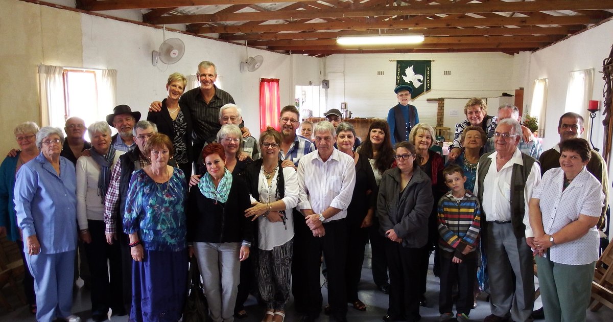 Op Saterdag 2 Mei is daar by die saal wat deur Jan en Nelia Koekemoer gratis aan ons beskikbaar gestel word lekker saam gekuier en liedere tot eer van die Koning gesing. ’n Heerlike maaltyd het die aand afgerond. Op Sondag 3 Mei om 11:00 het Ds. Deon Kloppers die 50ste erediens gelei waar die tema van genade wat ook die tema van die hele jaar is, sterk deurgekom het met die boodskap: “As Jesus se dissipels moet ons mekaar liefhê en aanvaar sodat die mense GOD al meer sal raaksien in ons lewe.” (Romeine 15:7) Die voorbeeld is gebruik van Christene wat almal saam op GOD se Broeder-skip (Fellow-ship) vaar op pad na die ewige eindbestemming toe. Elkeen van ons het ’n taak om op die Broeder-skip te verrig en tot eer van die Kaptein (GOD die Vader) te werk. Party red gedurig mense uit die see uit wat verdrink en ander maak vir hulle kos. Sommige is besig om die kanonne van gebed en aanbidding te beman terwyl ander weer besig is om die bemanning op te lei. GOD se genade het ons almal Sy skip gelaai en met liefde teenoor mekaar moet ons ons dankbaarheid betoon.