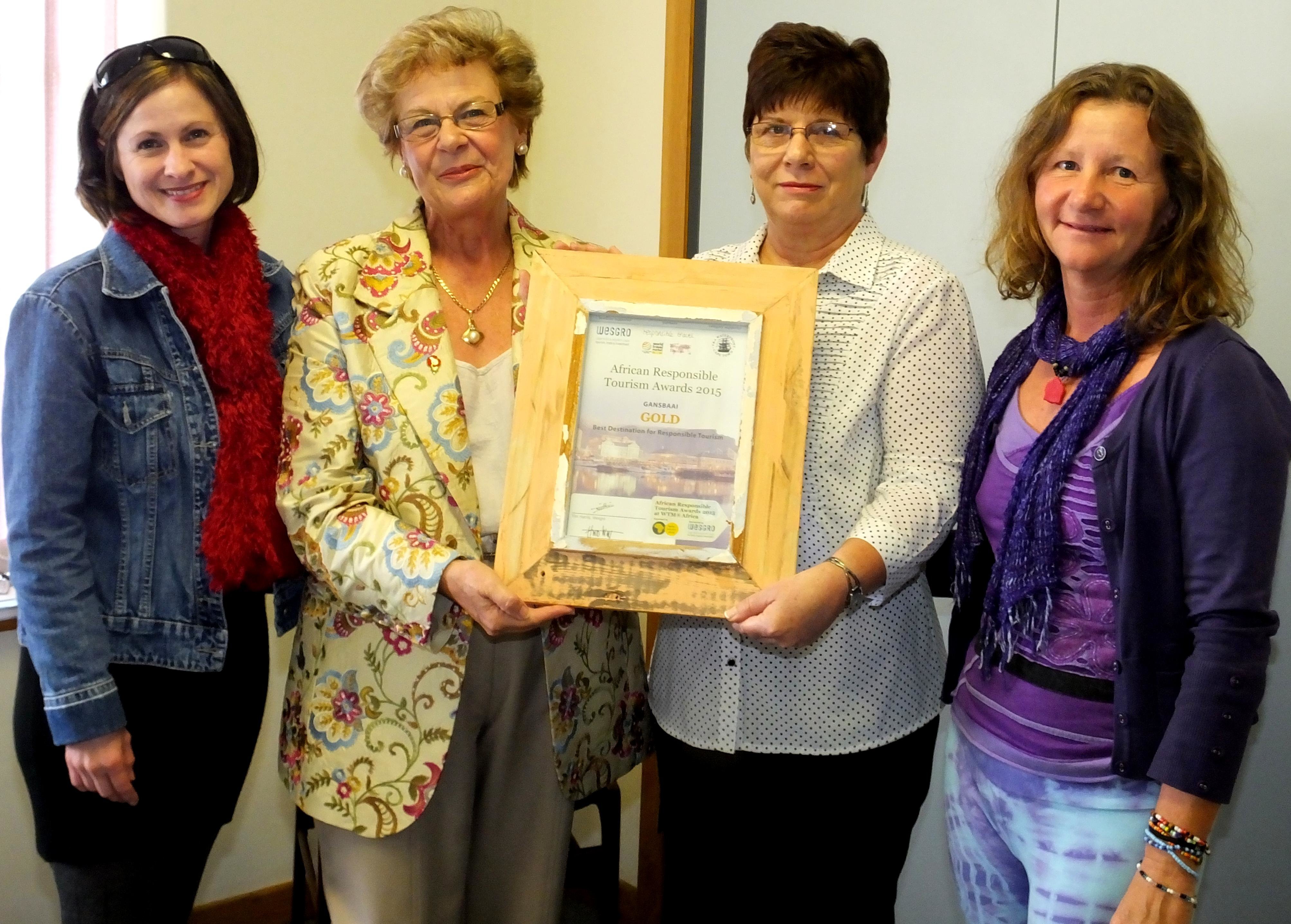 Gansbaai se drie Goue Verantwoordelike Toerisme Wenners (“Gansbaai ís Goud”, Gansbaai Courant, Donderdag, 23 April 2015), is weer beloon. Overstrandse Uitvoerende Burgemeester, Raadsdame Nicolette Botha-Guthrie het aan al drie instansies pragtige geraamde sertifikate namens die munisipaliteit oorhandig.