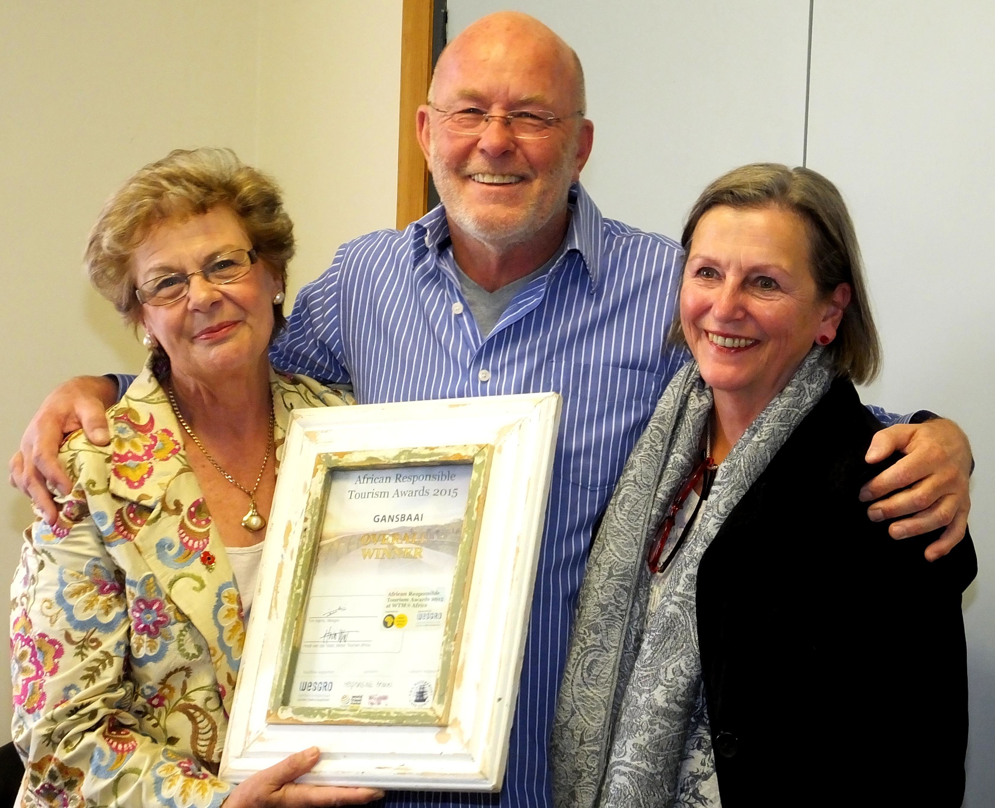 Die toekenning as Algehele Wenner wat aan Gansbaai Toerisme Buro gemaak is, het tot gevolg dat Gansbaai outomaties een van die finaliste vir die World Responsible Tourism Awards is wat gedurende November vanjaar in die Wêreld Handelsentrum in London sal plaasvind. Raadsdame Botha-Guthrie het haar opregte waardering tydens haar gelukwensing aan die drie instansies oorgedra en gesê die Overstrand in geheel kan net baie trots op hulle wees. Van die Toerisme Buro het Brenda du Toit (voorsitter), Glenda Kitley (Bestuurder) en Caron Lee (Bemarking) hulle sertifikaat in ontvangs geneem. Wilfred Chivell van Dyer Island Conservation Trust en Marine Dynamics se sertifikaat ontvang en Michael en Dorothy Lutzeyer van Grootbos Privaat Natuurreservaat in samewerking met Grootbos Foundation hulle sertifikaat.