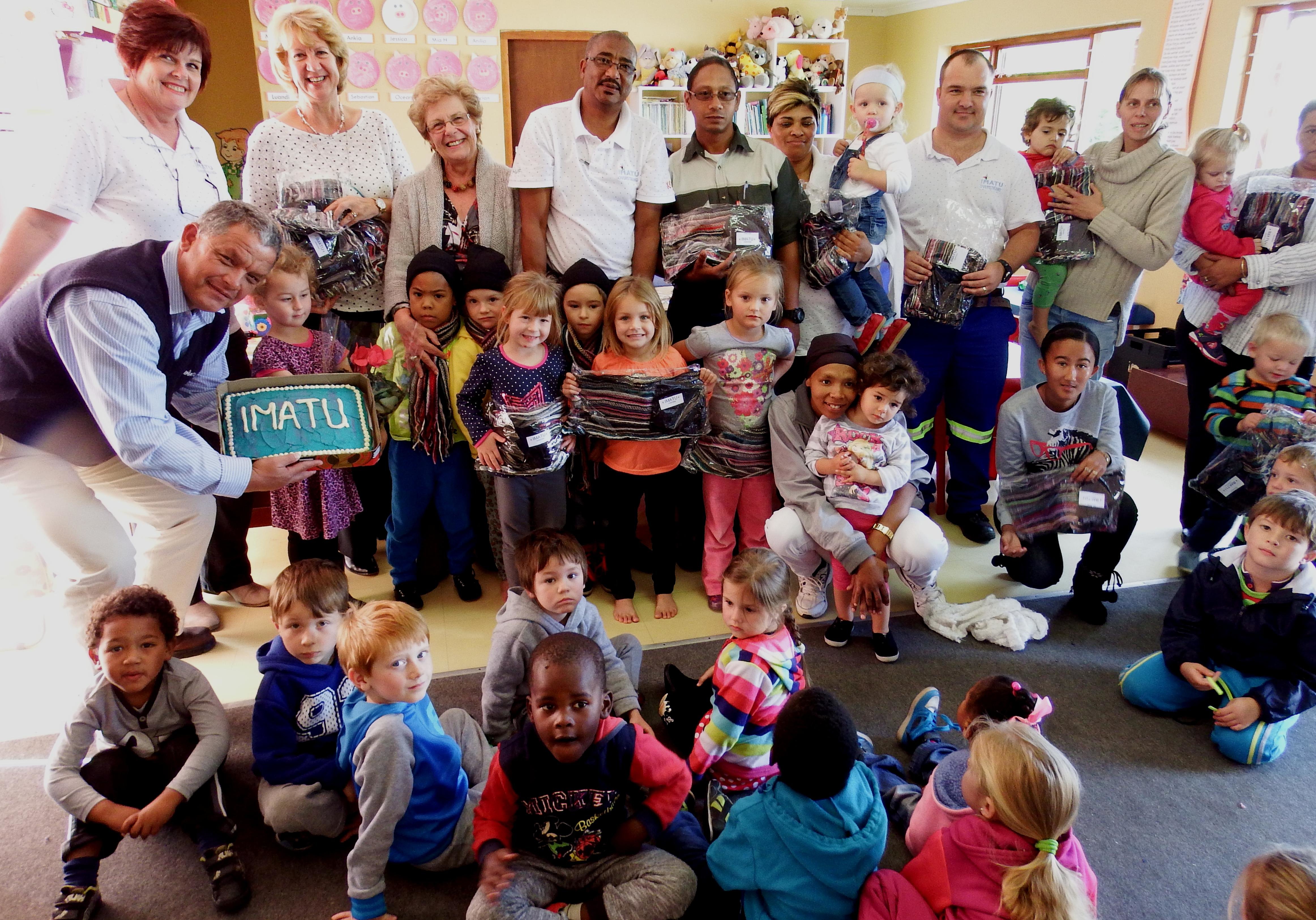 Onder andere is warm mussies en serpies aan kleuters van De Kleine Gansies (Gansbaai), Vrolike Vinkies (Mount Pleasant) en Siyabulela (Kleinmond) oorhandig. Francois Willemse, Voorsitter van IMATU in die Wes-Kaap, het soos volg verduidelik: