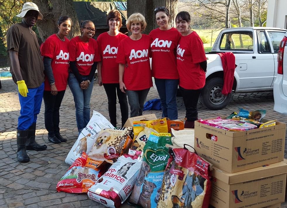 Aon on volunteers helping communities at risk. Celebrating its commitment to empowering economic and human possibility around the world, Aon, the global provider of risk management and human resource consulting and outsourcing, recently held its Global Service Day. Volunteers in more than 40 countries worked with more than 250 charities to help make their communities stronger and more sustainable. Aon colleagues at the Cape Town branch spent the morning at DARG Animal Rescue where they donated food and animal toys to the cats and dogs in need of adoption.