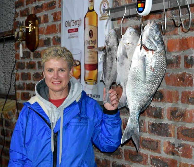 “Alida is die eerste dame in ons klub om ‘n hengelkompetisie te wen,” vertel Isolde. “Hierdie prestasie het sy behaal deur twee galjoene van onderskeidelik 1.25kg en 1.4kg te vang, asook ‘n steenbras van 2.45kg!” Isolde sê al was Deon Strydom se sak swaarder, het Alida se visse meer punte getel en was sy die kompetisiewenner. Deon het darem 2de met swaarste sak en grootste vis gekom, met Ewan Swart 3de, Dennis Morries Jr 4de en Jaycee Krynauw 5de. Sy sê Alida wen natuurlik ook die dameskompetisie, met Fanie du Toit wat die seniors se kompetisie gewen. In totaal was daar 55 deelnemers, met 9 hengelaars wat 16 visse ingeweeg het. “Na die inweeg het almal lekker by die Winter-kersligete saamgekuier, waar Gian Groen en Green Liberty ons met hulle uitstekende musiek vermaak het,” sê Isolde. “Dankie aan al die deelnemers, ondersteuners en borge wat bygedra het om die dag so ‘n sukses te maak.”