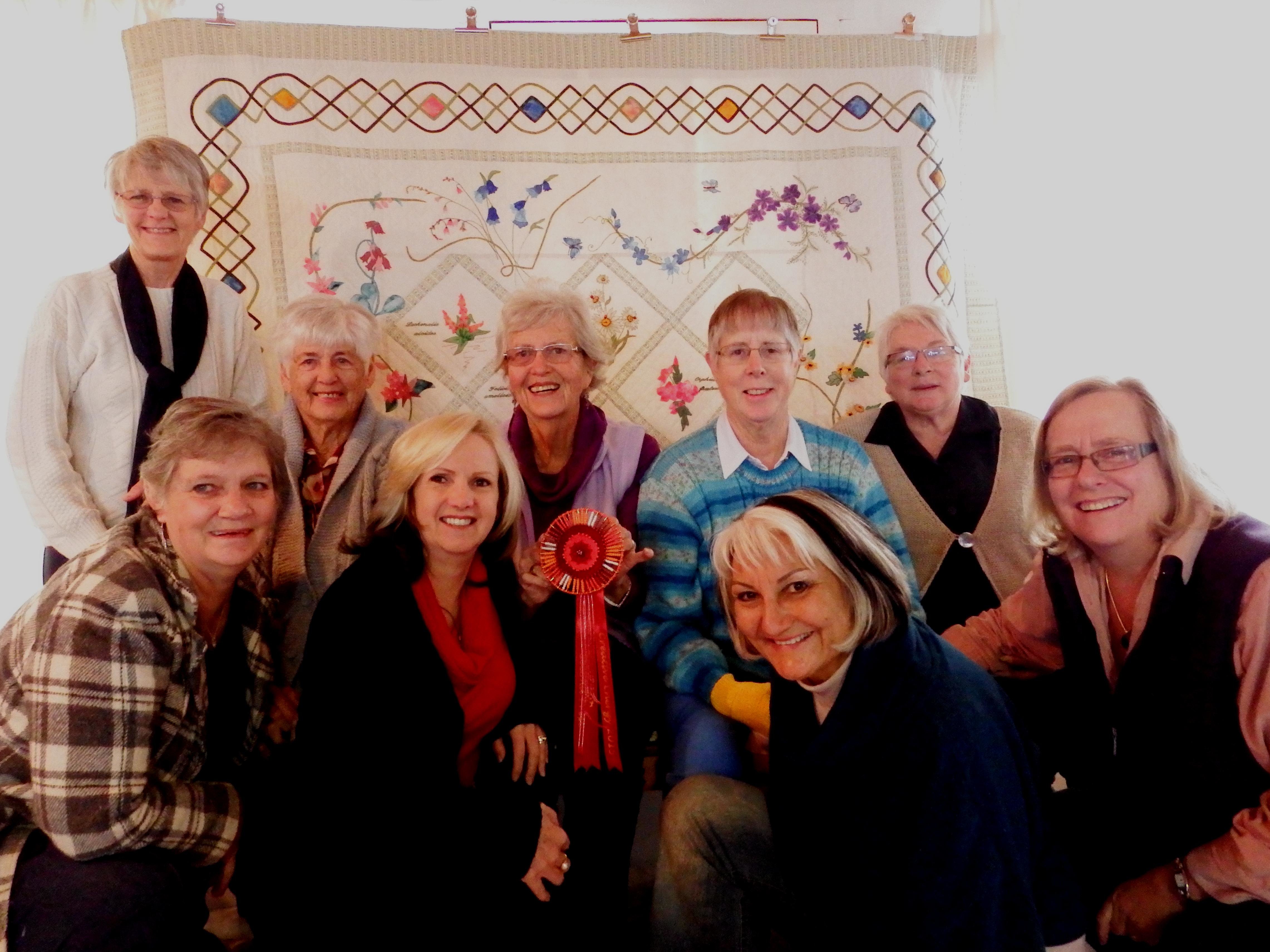Die lede wat aan die kwilt gewerk het, is Adrie Wessels, Grietjie Meyer, Hettie Lass, Lydia Voigt, Mausie Pienaar, Margaret Clarence, Mariana Meye, Nettie le Roux, Olga Swanepoel, Rentia van Jaarsveld, Rika Hoffman, Suzette Reyneke en Liz Levey. Appliek- en borduurwerk moes gedoen word en vele lappies moes uitgesoek en uitgeruil word om by die kleurskemas aan te pas. Van die dames het meer as een blok geneem en toe dit gereed is, het hulle bymekaargekom, waarna ‘n paar stroke gesny is om tussen die blokke in te voeg om dit aanmekaar te heg.