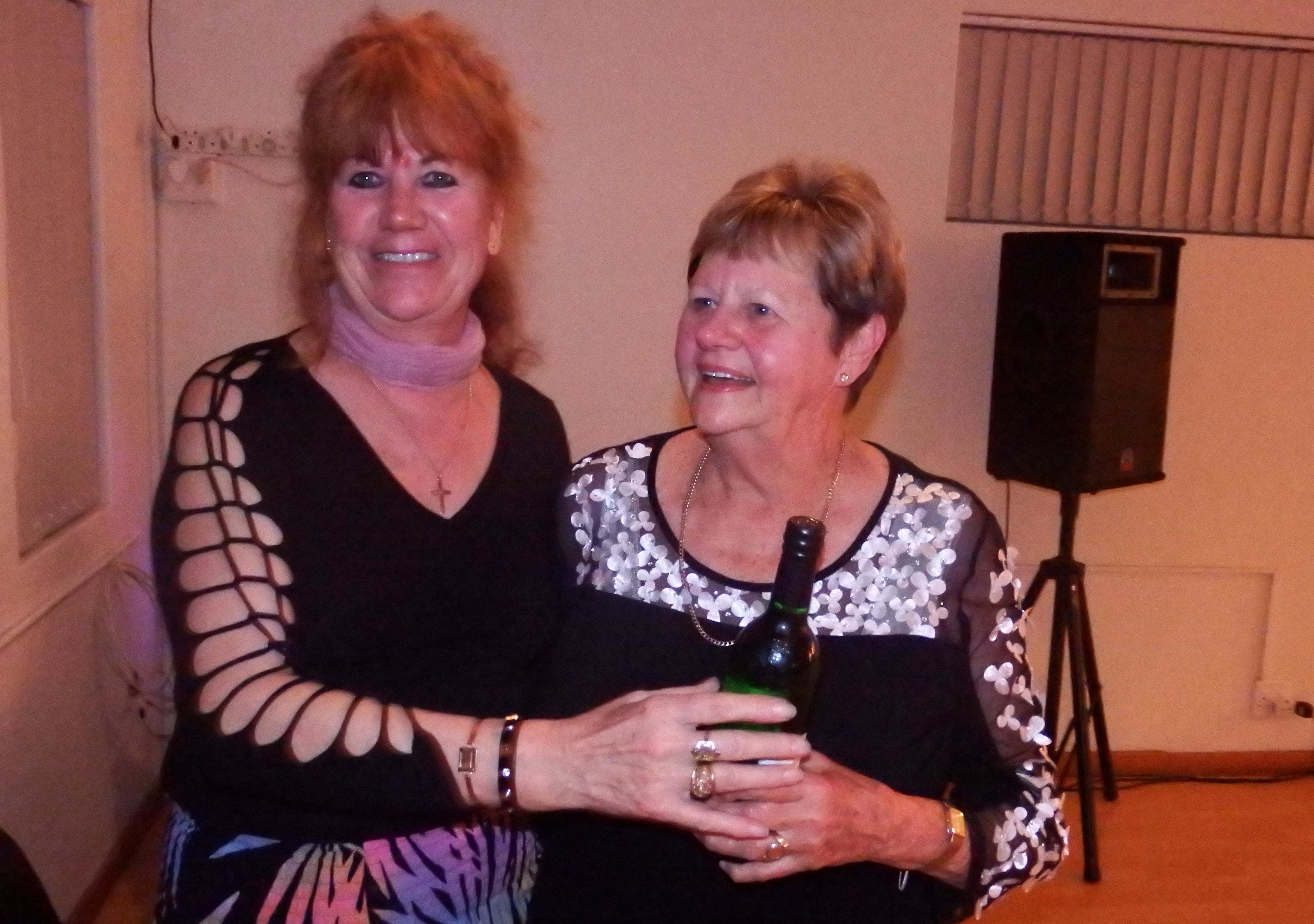 Margi, met ‘n Indiese “kolletjie” op haar voorkop, het ook vir ‘n verrassing gesorg. Kolletjies is onder een stoel by elke tafel geplak en daardie sittendes het elk ‘n prys ontvang. Hulle is Ria van der Merwe, Leahndie van Wyk, Regina Louw en Jean Downing. Geluktrekkings was ook weer aan die orde van die dag, met Pop Malan en At Roux wat die gelukkige wenners van ‘n bottel wyn was. Dit was ook Steve se verjaardag en Margi het spesiaal “Sweef soos ‘n Arend” deur Raymond Rabe se Musiekfabriek laat speel waarop hulle gedans het - dit was ook die egpaar se huwelikslied op hul troudag.