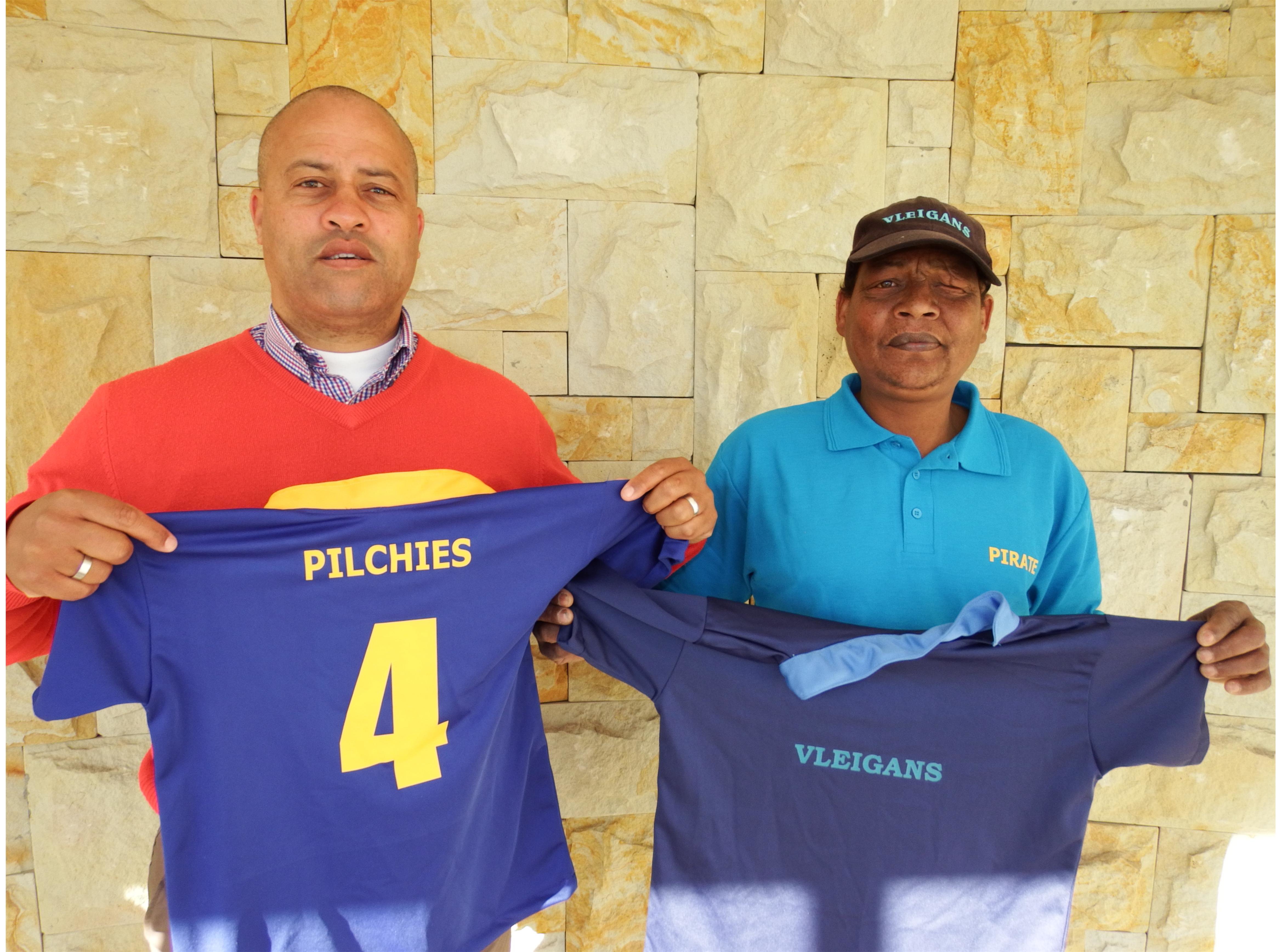 Johan Wilkenson (regs), die “Pirate” op die Pelagiese Vissersboot, Vleigans van Louis Groenewald, het inisiatief aan die dag gelê om ‘n borgskap van Vleigans (Louis Groenewald) en Disa Sport (Robin Kaplan) vir rugbytruie vir die o/11 span van Gansbaai Primêr te bekom.